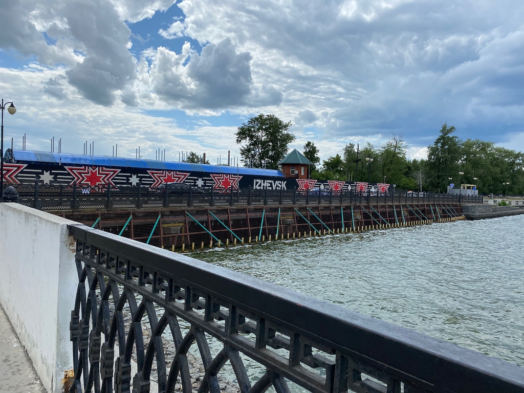 Наконец-то мы дошли до места, с которого началась история города Ижевска. Здесь у нас та самая заводская плотина и главный корпус ижевского оружейного завода.