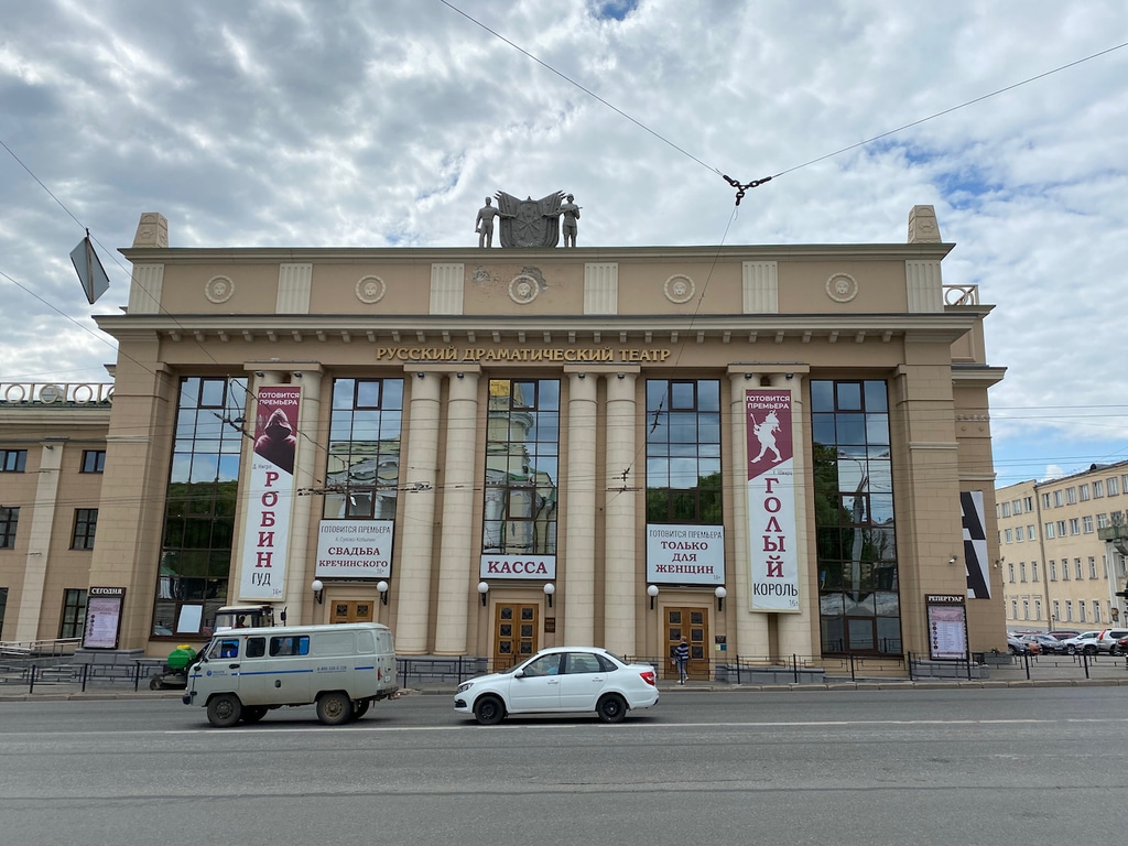 В двух шагах от Михайловской колонны находится здание русского драматического театра. Сам театр работает в Ижевске с 1935 года. В здание рядом с Михайловской колонной он переехал в 2011 году.