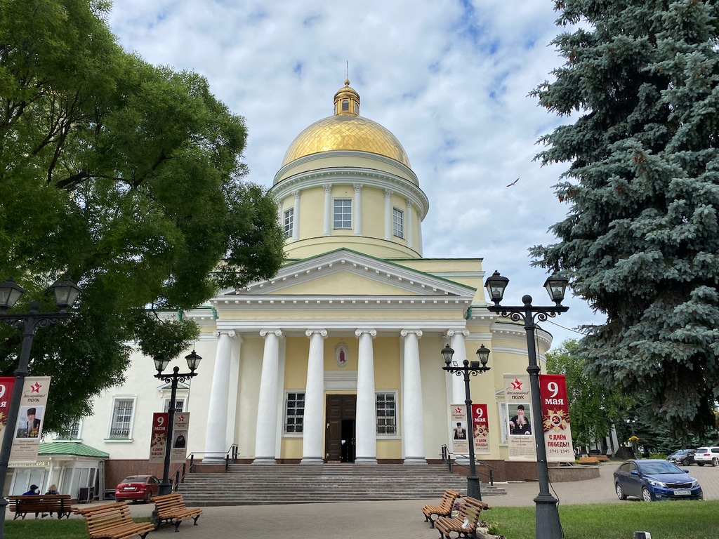 Через улицу от драматического театра возвышается старинный Александро-Невский собор, о котором упоминалось выше.