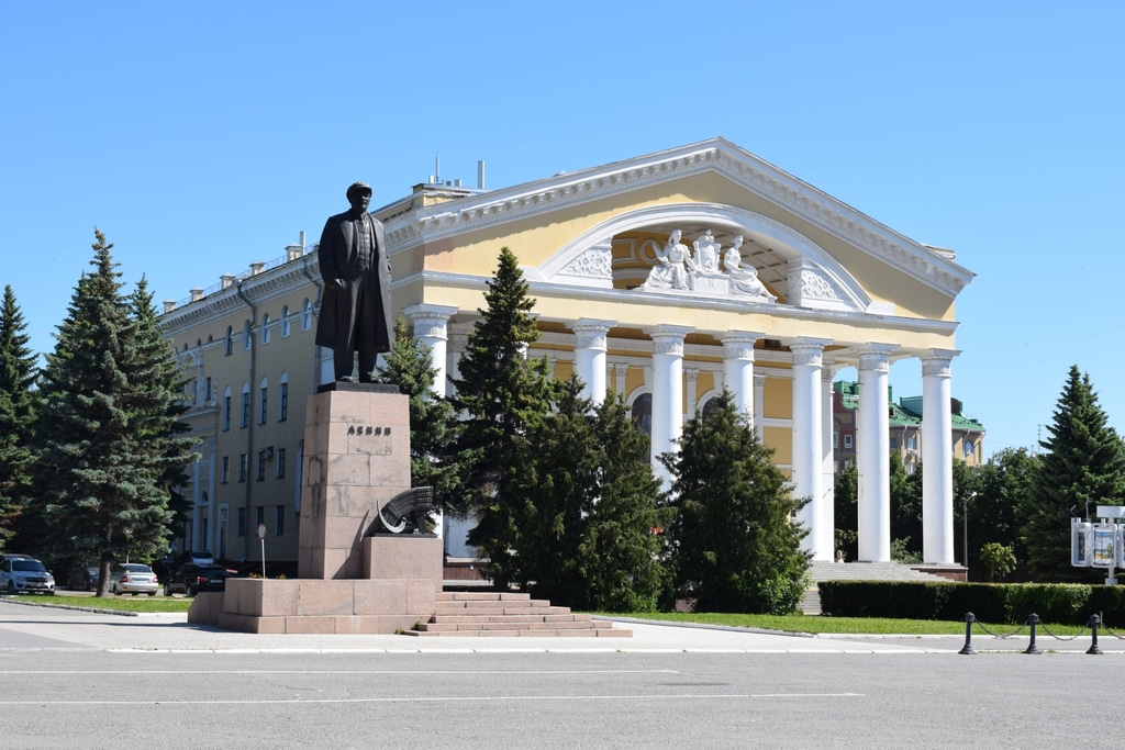 Буквально в двух шагах от Йошкина кота — площадь Ленина с традиционным памятником Ленину и драматическим театром. Формирование этой площади относится к советскому периоду, к 1960-м годам. Надо отметить, памятник Ленина несколько отличается от других городов. Странно, но Ленин никуда не зовет, а просто умиротворенно созерцает вокруг. Какой-то не революционный Ильич получился.