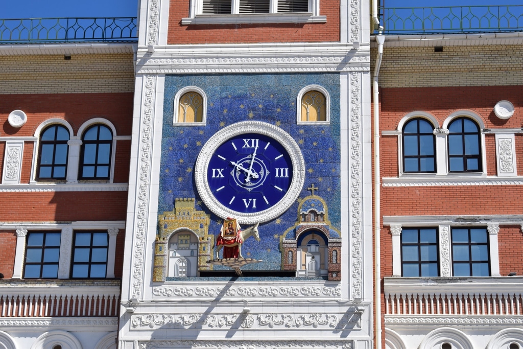 Начнем с Благовещенской башни. Надо отметить, что Благовещенская башня Йошкар-Олы — это уменьшенная копия Спасской башни Московского кремля. Появилась она в городе как и многое другое в 2000-е годы. Высота башни составляет 55 метров, а ее часы — самые точные в городе. Вот такая диковинка в центре города!