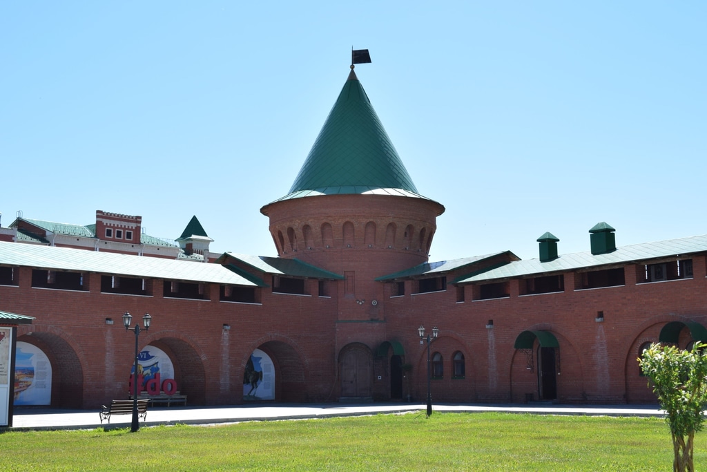 Первым объектом нашего знакомства с Йошкар-Олой стал Царевококшайский кремль. Та крепость, что мы сейчас видим в городе, появилась не так давно, в 2000-е годы. На самом деле первое укрепление, построенное российскими военными в 1584 году, выглядело совсем иначе. Оно было небольшим, деревянным и представляло из себя скорее что-то похожее на острог. Сегодня крепость выглядит вот таким образом.