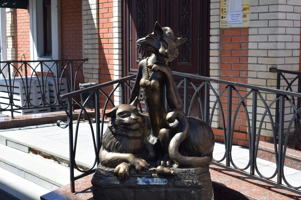Перед одним из ярких аккуратных домиков — скульптура кокетливой Йошкиной кошки. У ее ног вальяжно развалился толстый кот. Правда этот кот мало чем знаменит. Настоящий Йошкин кот живет совсем в другом месте, но о нем поговорим позже.