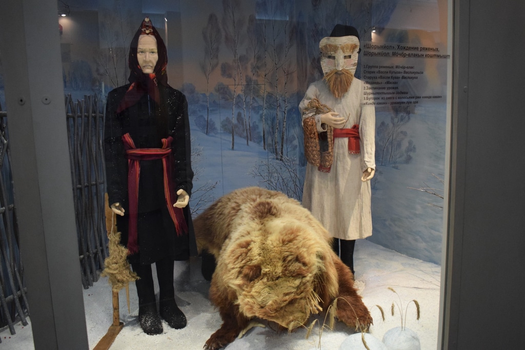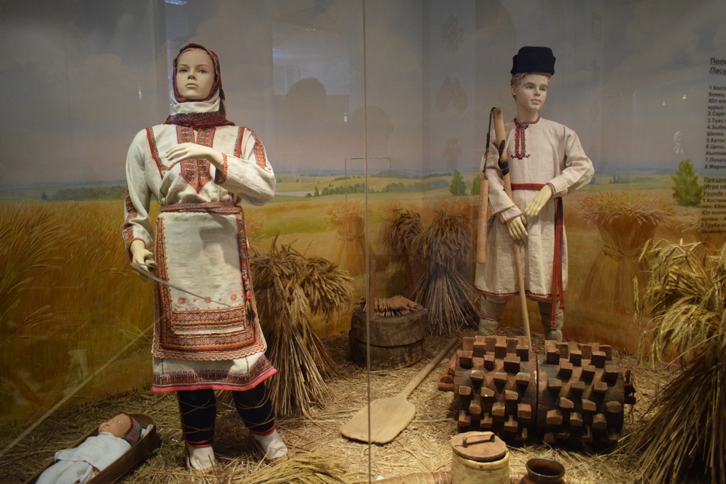 Последний штрих к Йошкар-Оле — посещение Национального музея республики Марий Эл. Этот краеведческий музей открыт в первые годы становления советской власти в 1920 году. Музей обладает огромной коллекцией экспонатов. Мы из-за недостатка времени посетили только этнографическую экспозицию. Очень хотелось познакомиться с культурой и бытом коренного населения этой земли — марийцев.