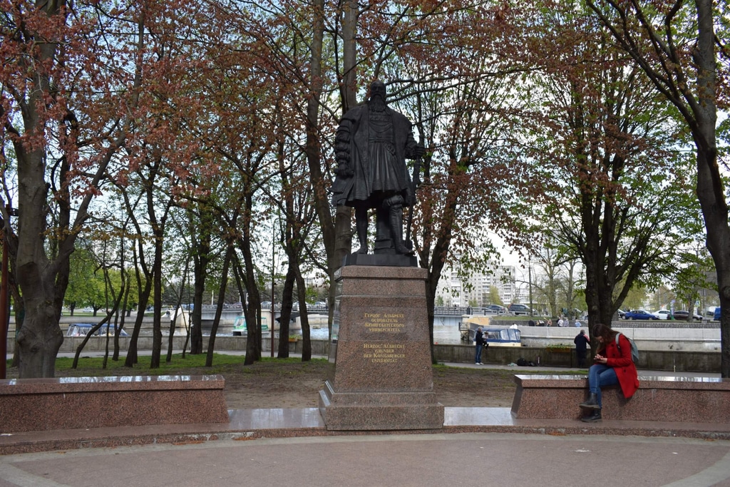 Тут же недалеко возвышается памятник основателю этого университета герцогу Альбрехту. Кстати, герцога, как и Канта, тоже в свое время похоронили в Кафедральном соборе.