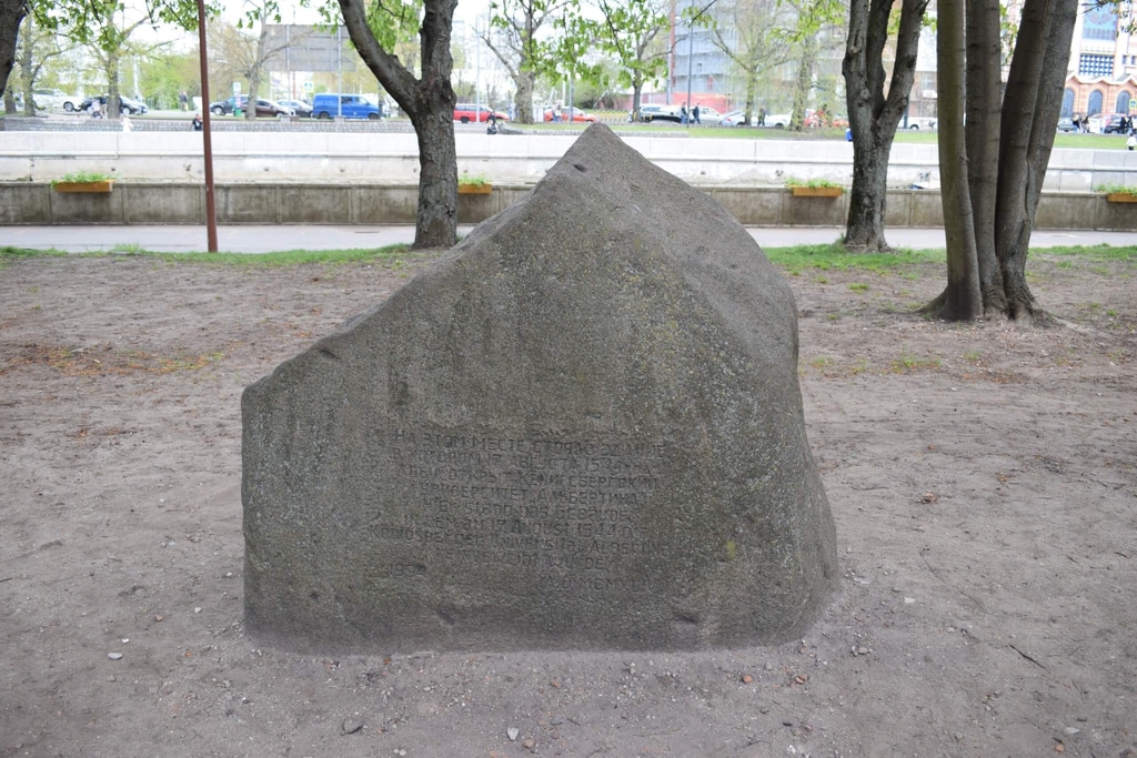 Недалеко от могилы Канта установлен памятный камень на месте, где когда-то стоял Кенигсбергский университет. К сожалению, здание во время боев было разрушено.