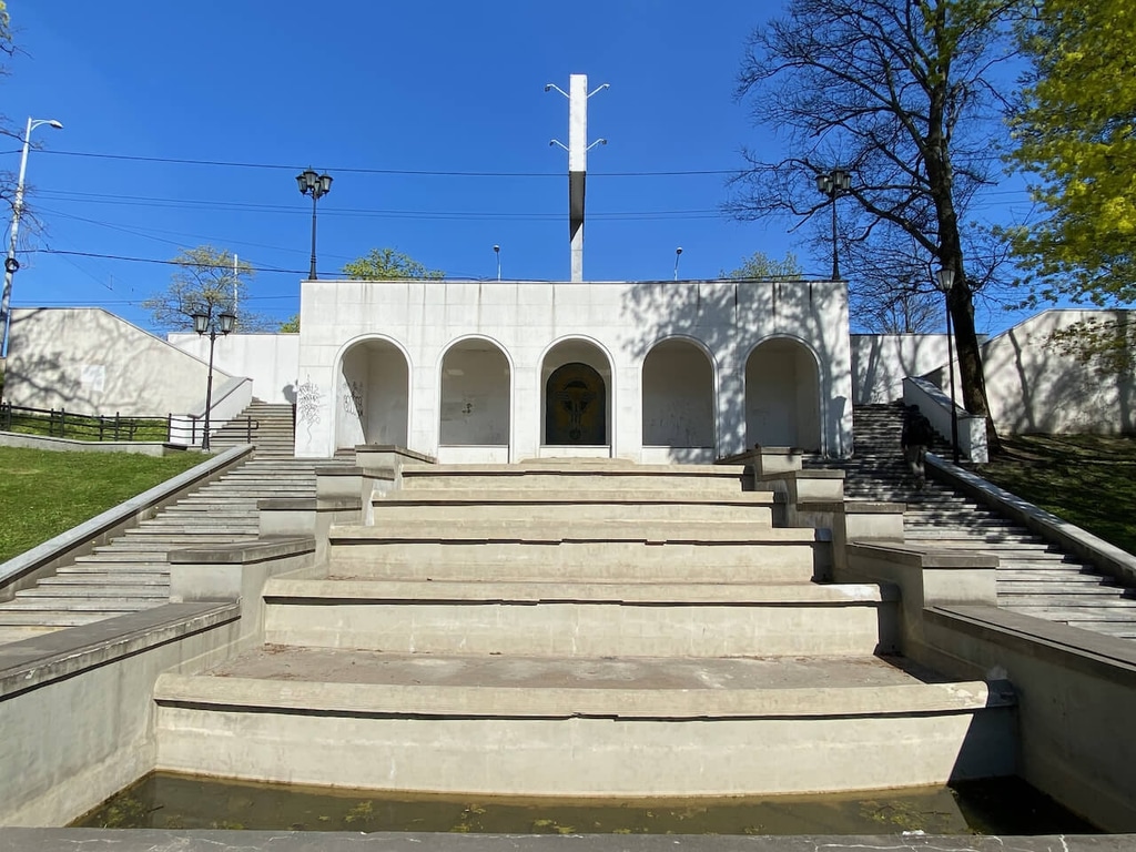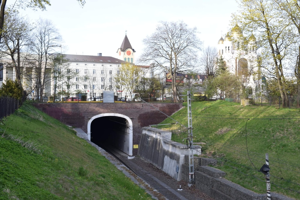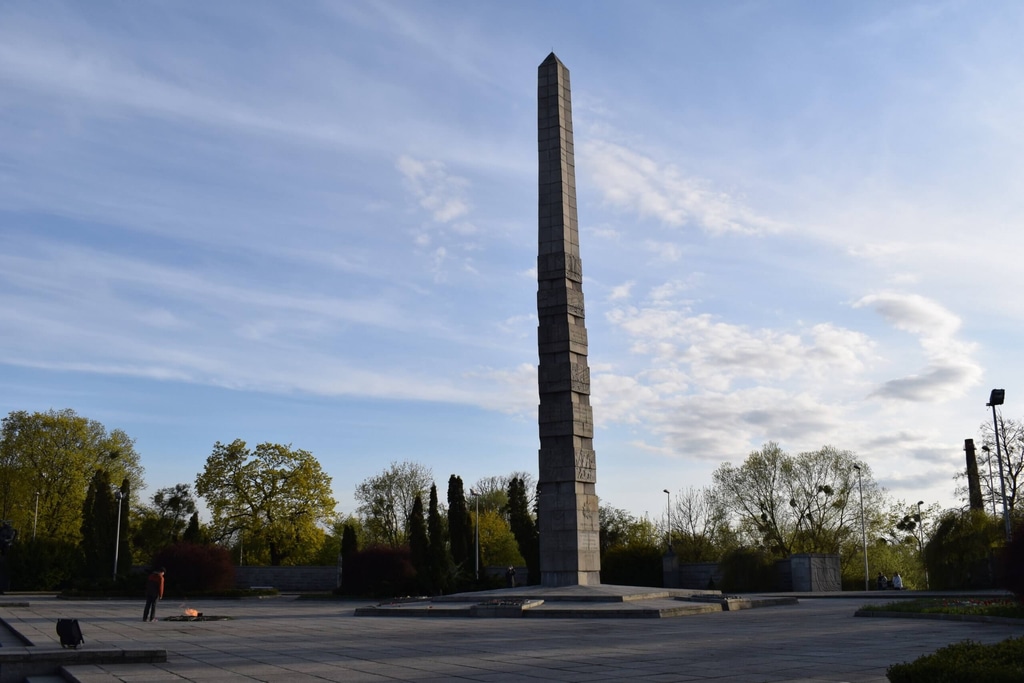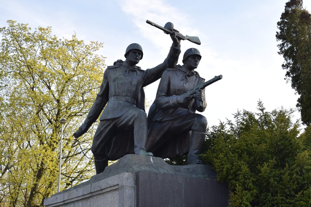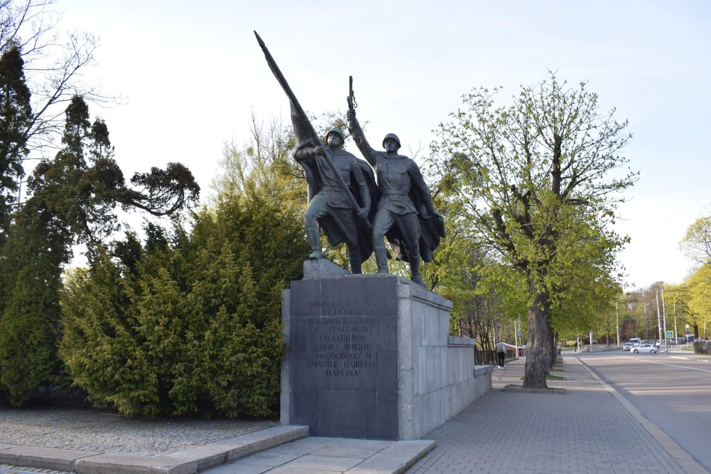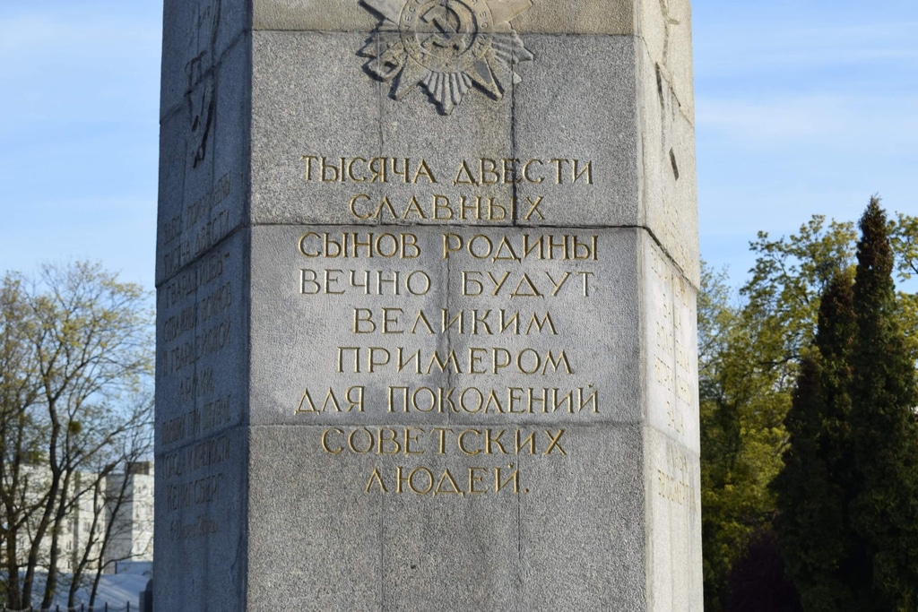 Следуя вдоль железнодорожного полотна, мы добрались до знаменитого памятника 1200 гвардейцам. Здесь же находится и братская могила тех, кто погиб в боях за Кенигсберг. Памятник поставили почти сразу же после боевых действий в 1945 году. Он стал одним из первых воинских мемориалов в Советском Союзе.