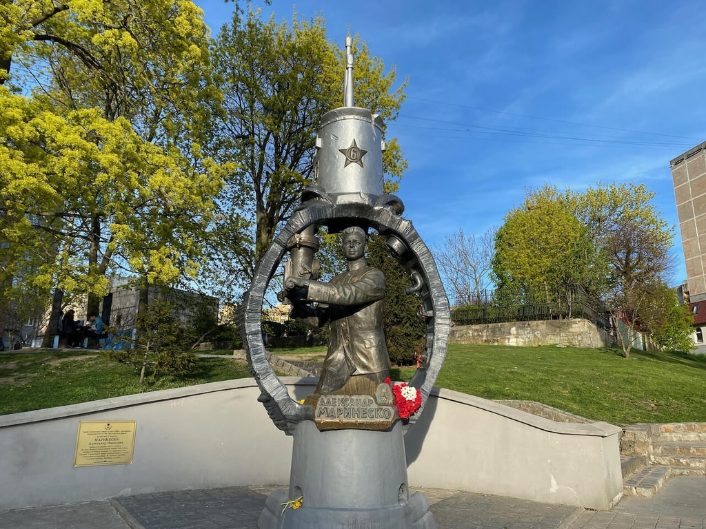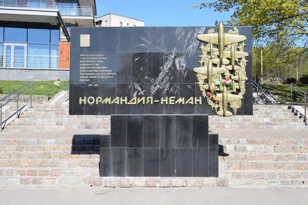 Невозможно пройти и мимо другого монумента. Он сразу бросается в глаза. Памятник посвящен французским летчикам полка «Нормандия-Неман», которые воевали на стороне Советского Союза. К сожалению, много французов сражалось и на стороне Германии. Но это совсем другая история…