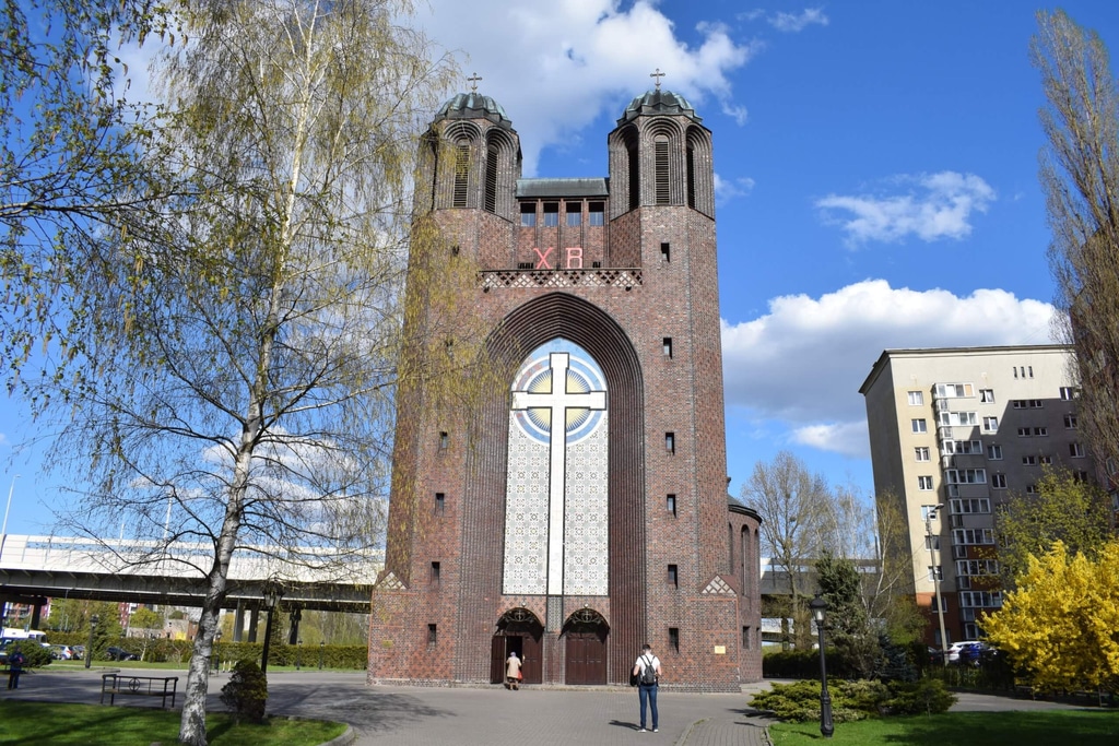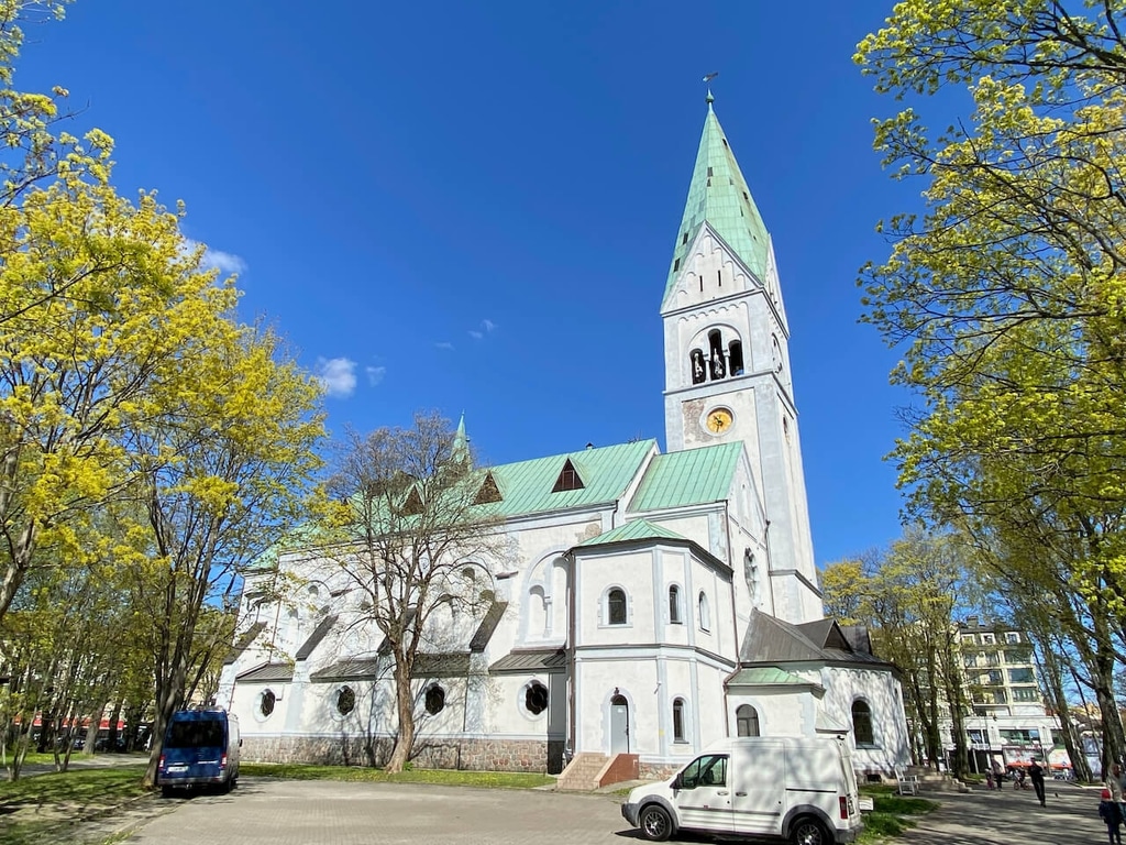 За синагогой в глубине жилых кварталов скрывается православная церковь. Это Крестовоздвиженский собор. Он занимает здание бывшей лютеранской кирхи Креста, построенной еще до войны в 1933 году. Во время ожесточенных боев кирха чудом уцелела. Православным храмом кирха стала в 1986 году. Надо сказать, архитектура здания довольно необычна для православного собора.