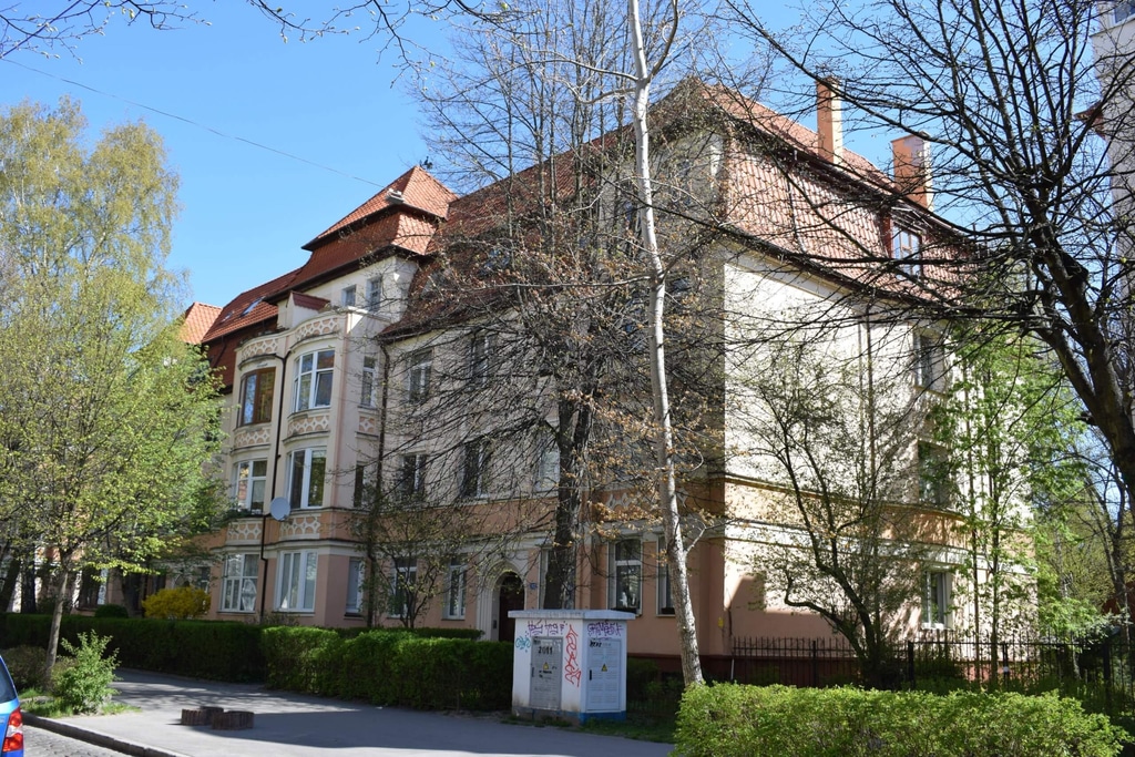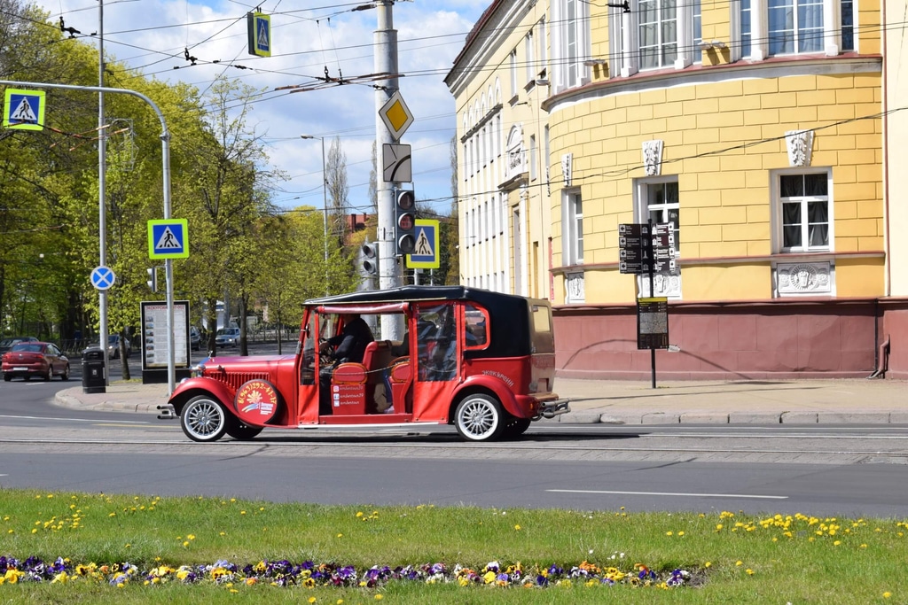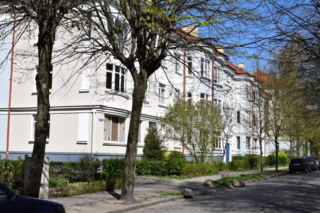 Из парка по улице Красной мы идем к последнему седьмому хомлину Малышу. Он находится в историческом районе Калининграда со старыми немецкими постройками 1920-1930 годов. На улице Красной можно представить, как город выглядел до войны.