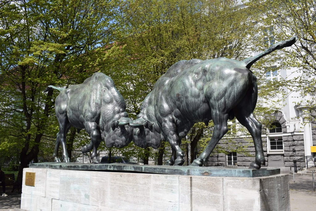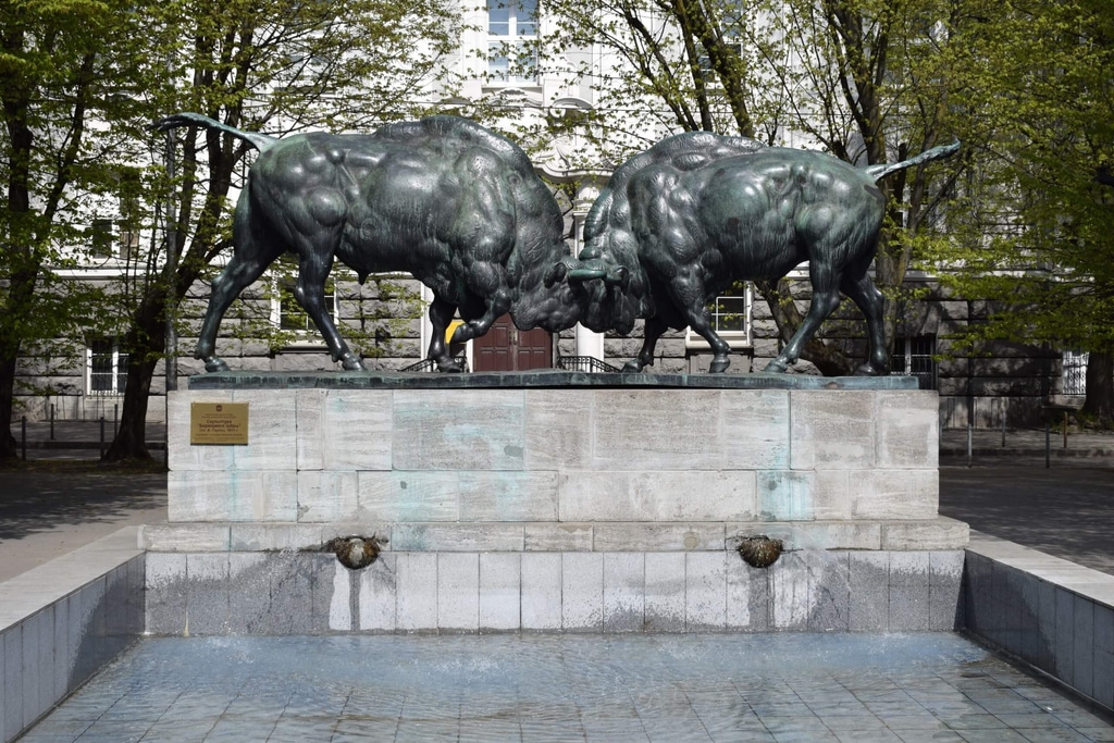 Скульптурная композиция зубров появилась в городе в 1912 году. Из-за находившегося рядом здания суда в народе скульптура получила меткое название «Прокурор и защитник».