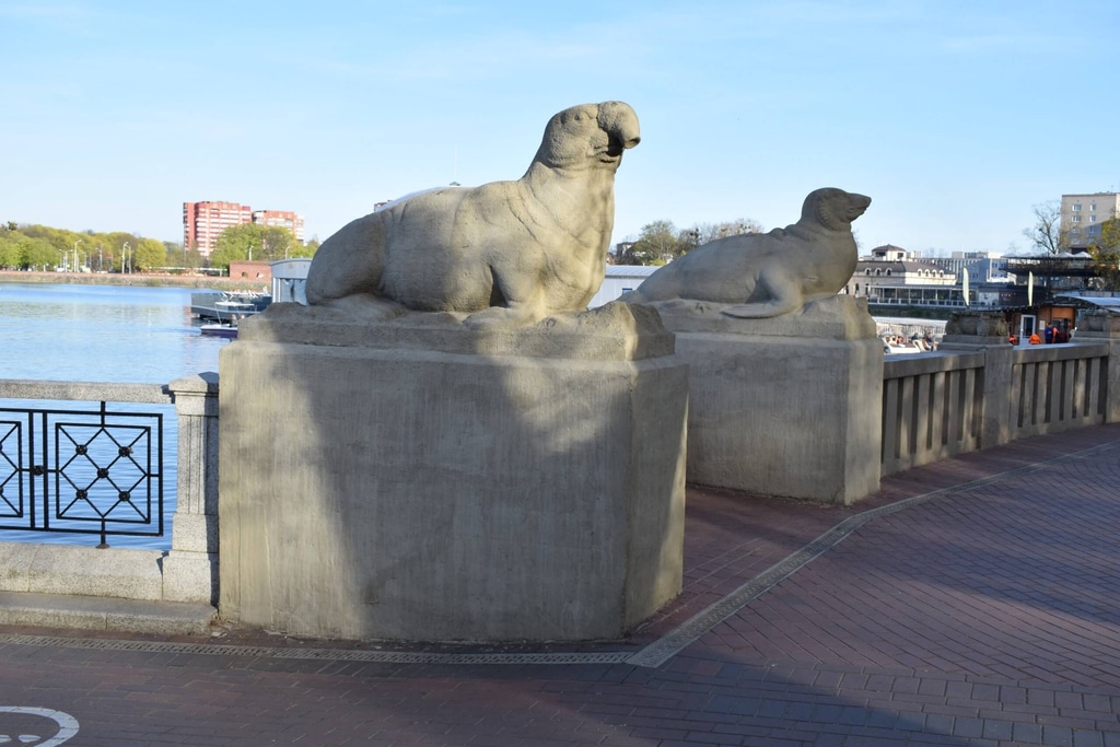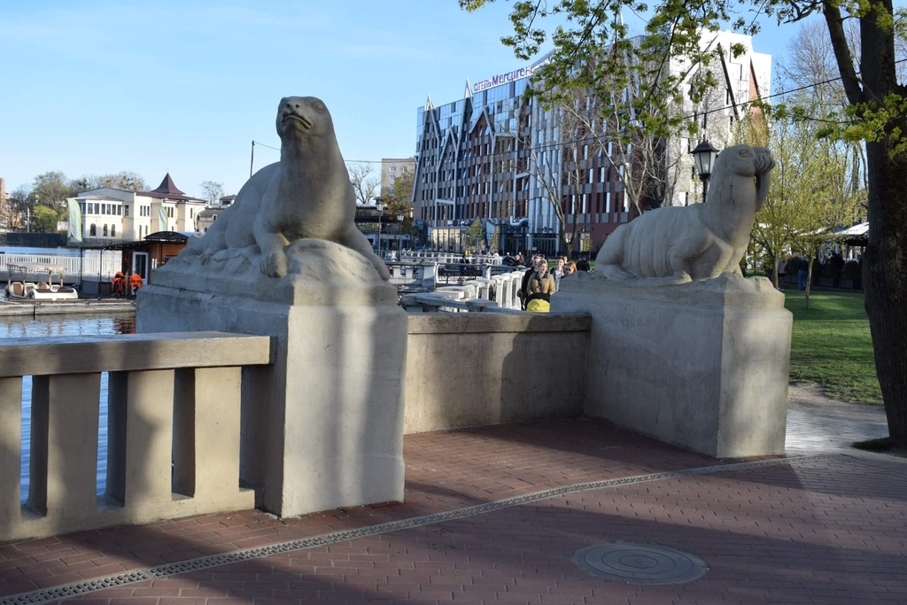 На берегах Верхнего озера можно увидеть скульптуры морского слона, морского льва. морской собаки и моржа. Они точно такие же как и те, что появились здесь еще до войны, когда город был немецким.