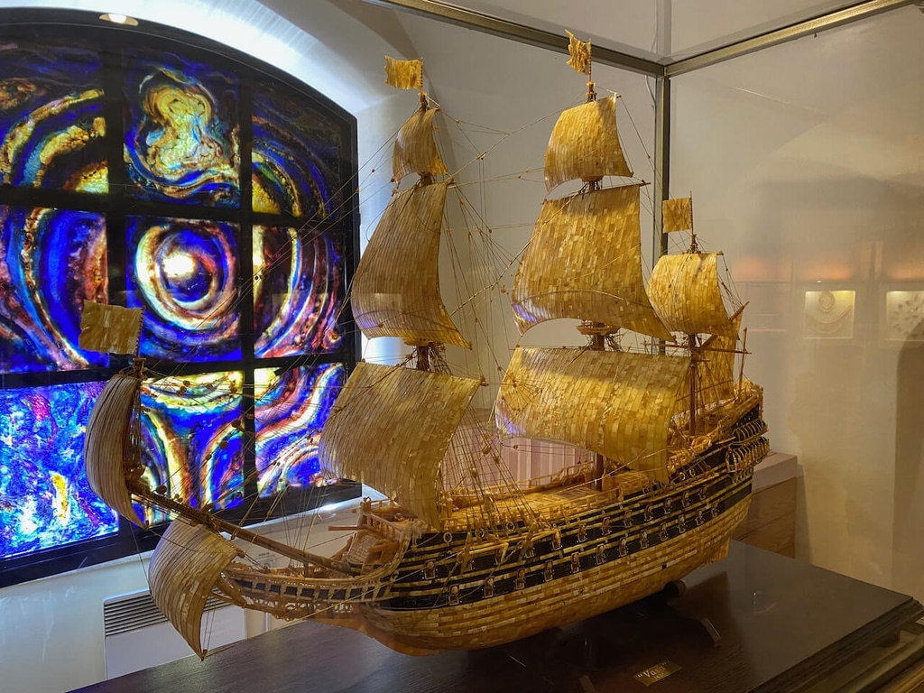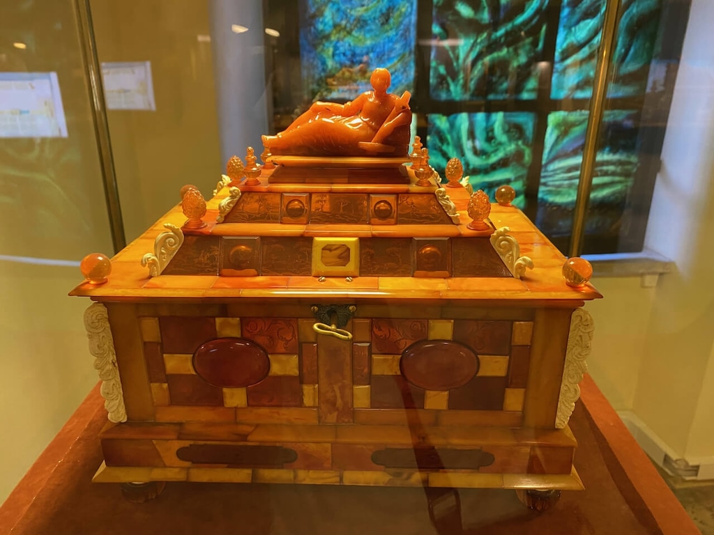 В Музее янтаря чего только нет. Коллекция просто огромная! Но главной достопримечательностью музея, конечно же, является янтарь весом более 4 килограммов. Хотя выглядит он, надо сказать, не очень привлекательным. Зато другие экспонаты — просто сказка!