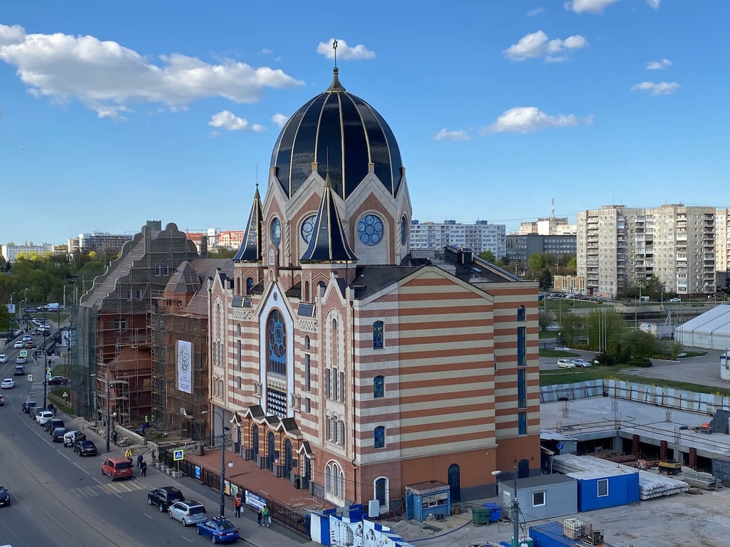 Недалеко от Медового моста возвышается еврейская Синагога. Это современное сооружение и построено оно в 2018 году. До войны на этом месте тоже стояла синагога. Она была единственной, что уцелела после прихода к власти фашистов.