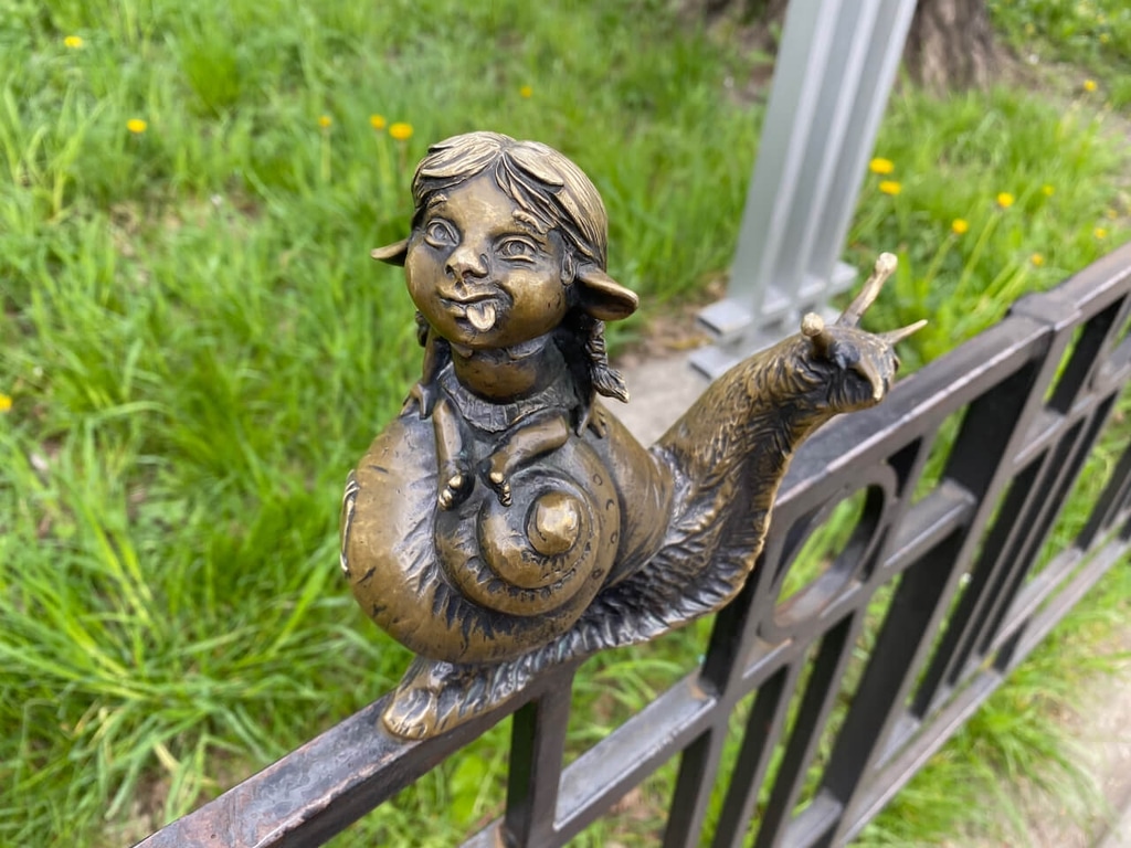 Перед самым входом в зоопарк находится шестой хомлин. Это задорная Малышка Уля верхом на улитке. Охота продолжается. Нам осталось разыскать последнего хомлина.