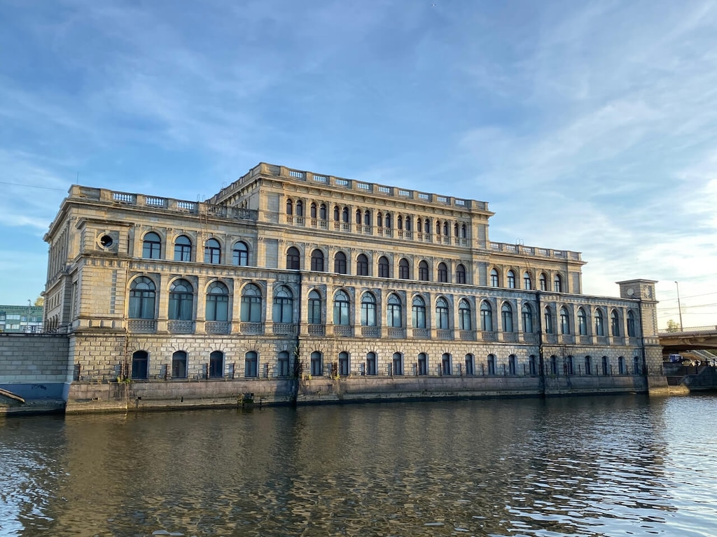 Поверх острова Канта и реки Преголи протянулся эстакадный мост. Около этого моста на самом краю берега расположилось здание старой Биржи. Биржа открылась в Кенигсберге в 1875 году и предназначалась для торгов.