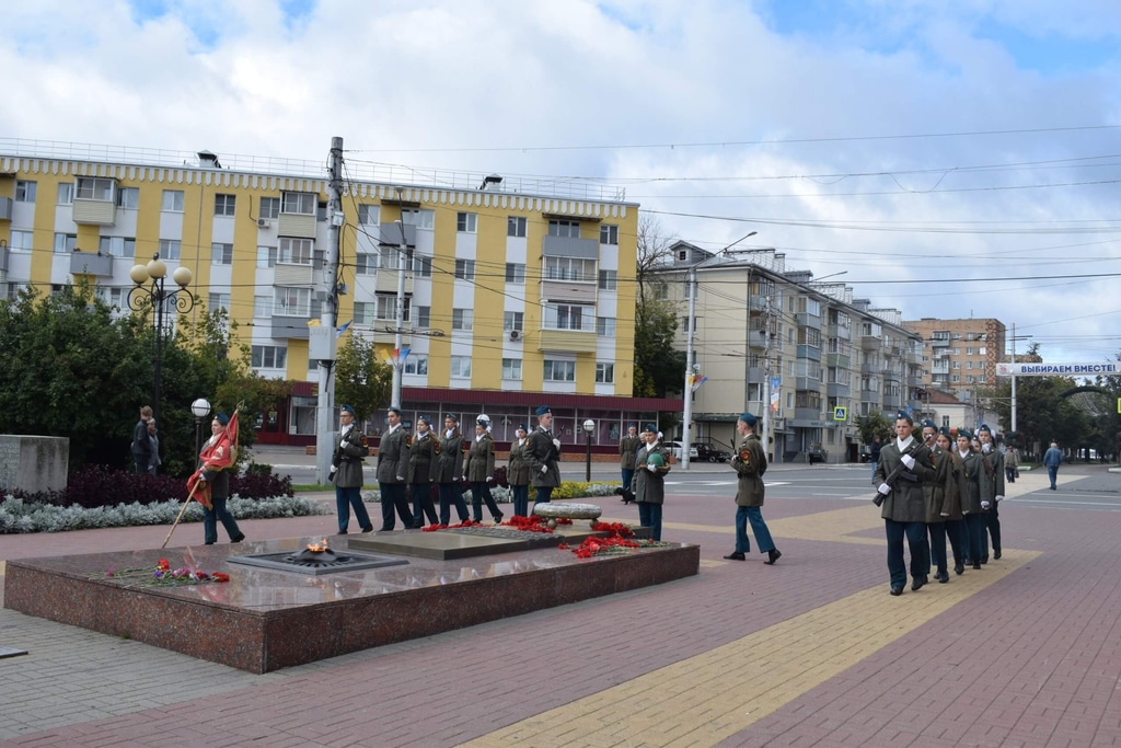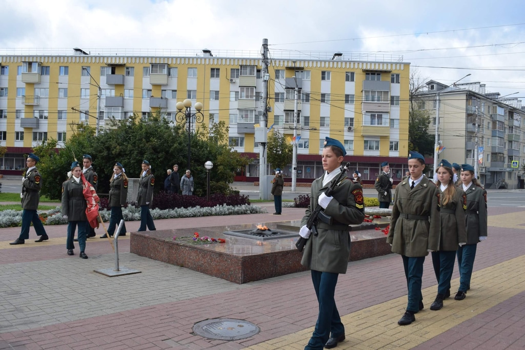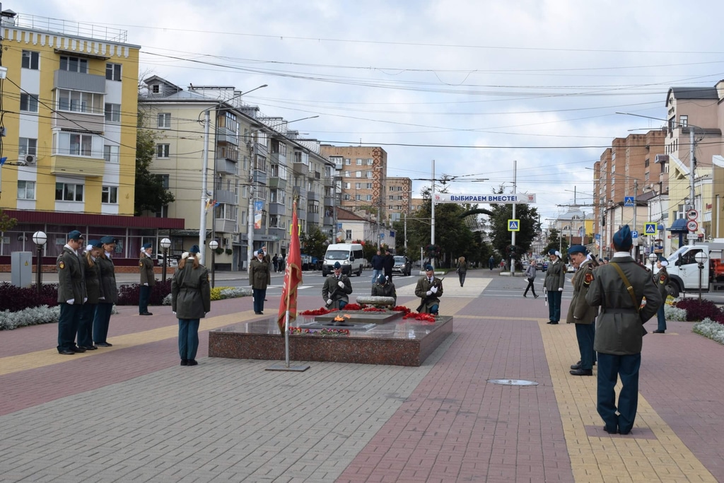 И конечно же, здесь на площади Победы горит Вечный огонь. Под ним захоронена урна с прахом солдат, погибших в войну. Рядом с Вечным огнем в почетном карауле стоят учащиеся школ и колледжей. Видно, что ребята очень стараются. Молодцы!