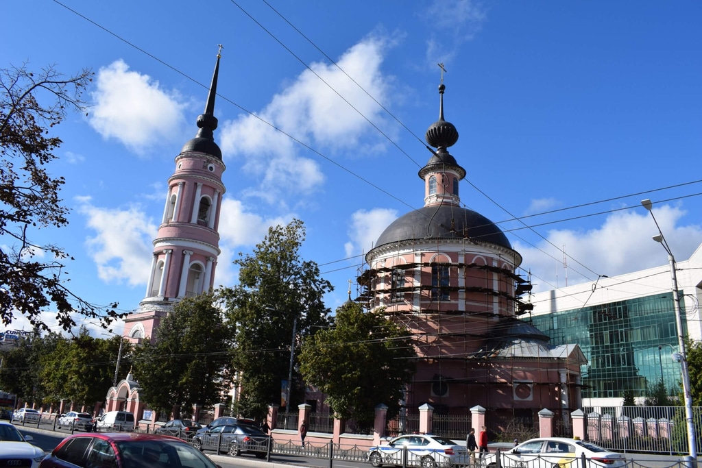 На нашем пути — еще один храм. Это церковь Успения Пресвятой Богородицы. Он построен в середине 18 века, но в деревянном виде существовал и до этого времени. При советской власти церковь была закрыта и в ней работала швейная мастерская, в 1990-е годы храм передали церкви.