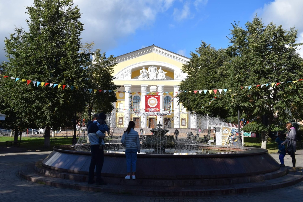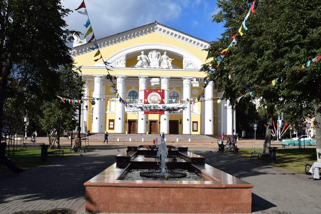 Перед театром раскинулся Театральный сквер, который одной стороной выходит на улицу Кирова.