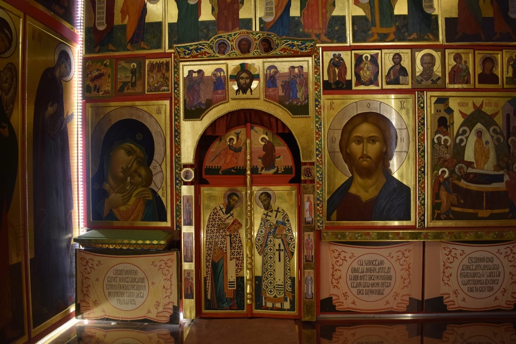 Внутреннее убранство храма тоже крайне необычно. Здесь тебе и иконы с традиционными сюжетами, и картины современных художников, и даже выставка кукол.