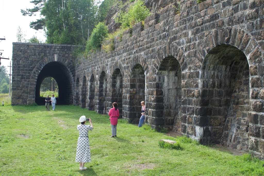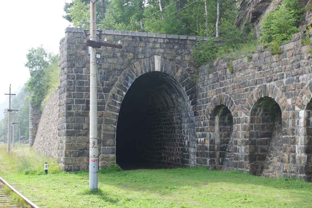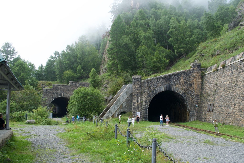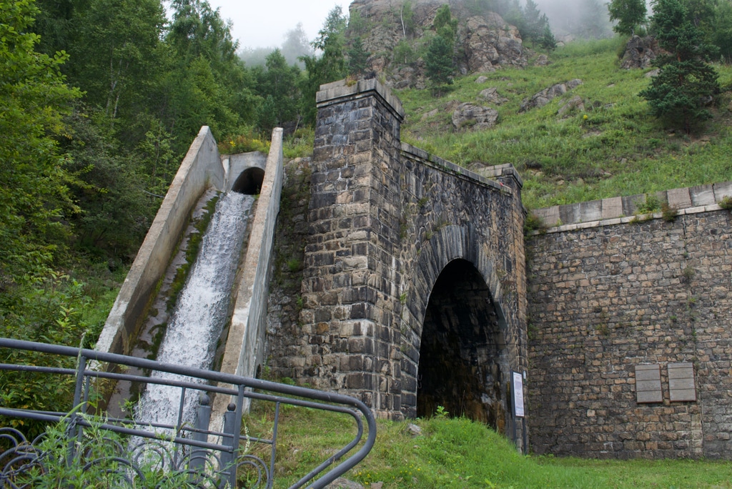 Здесь построили сначала один, а потом второй тоннель, через который и прошла дорога. Первый тоннель проложили неудачно, он так и стоит незавершенный.