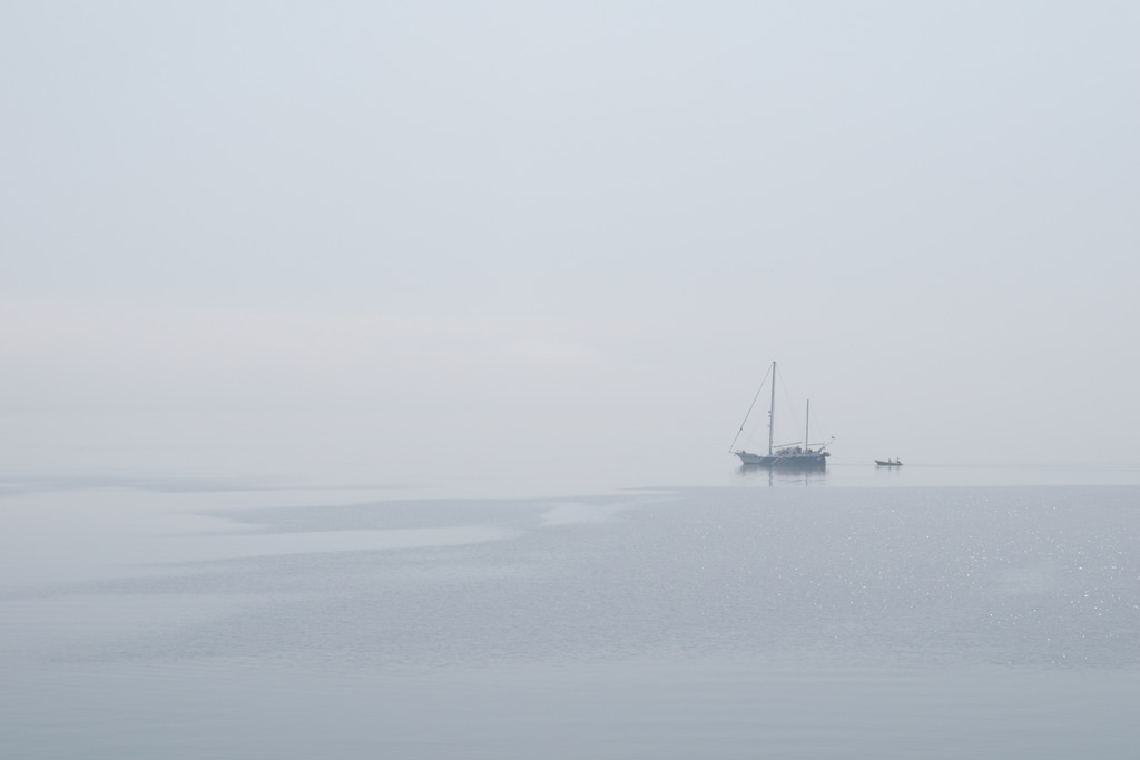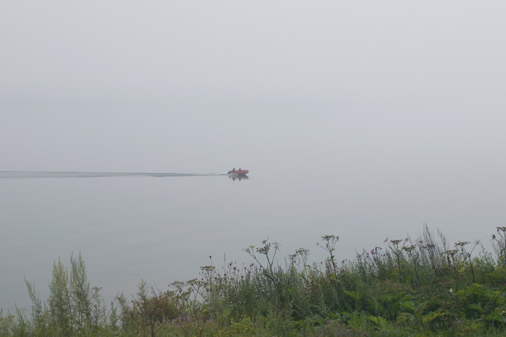 Над Байкалом стоит такой густой туман, что почти ничего не видно.