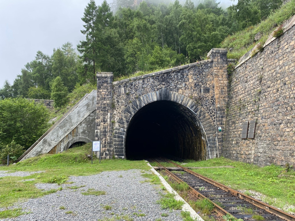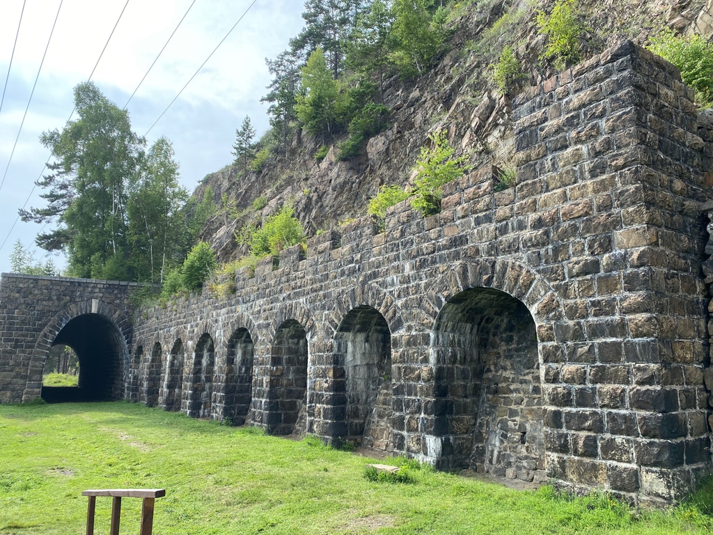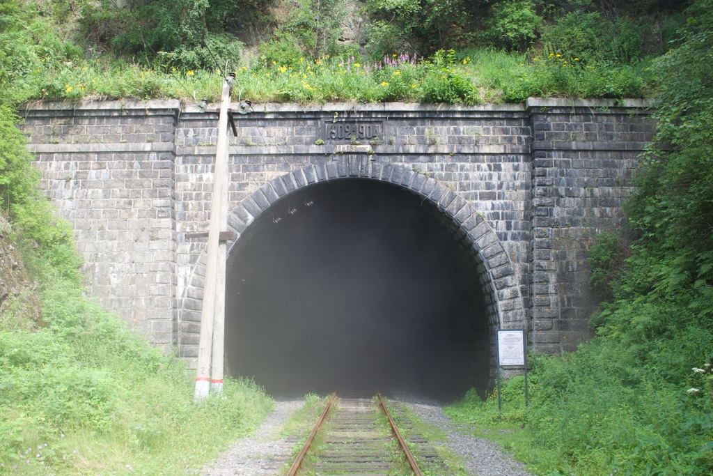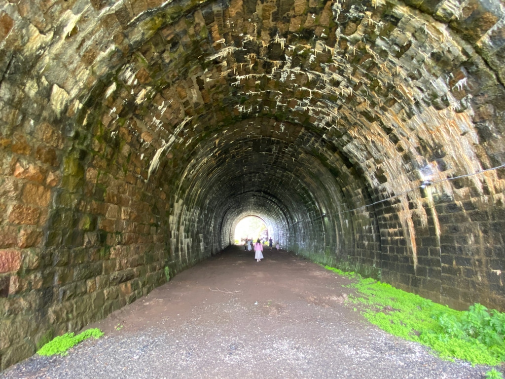 За мостом находится один из старых тоннелей, через который когда-то шел поезд. Эти сложные сооружения прокладывали сквозь скалы, в основном, ручным способом. До наших дней дошло порядка сорока тоннелей.