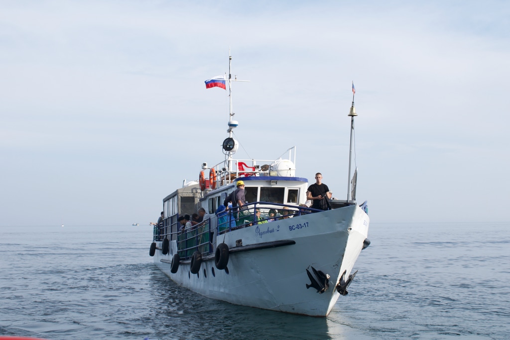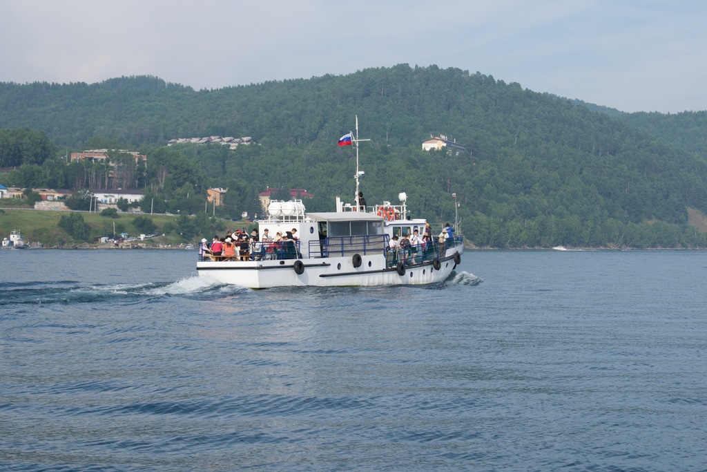 Порт Байкал находится у самого истока реки Ангары, вытекающей из озера Байкал. Здесь мы пересели на корабль, который идет до поселка Листвянка на другом берегу Ангары.