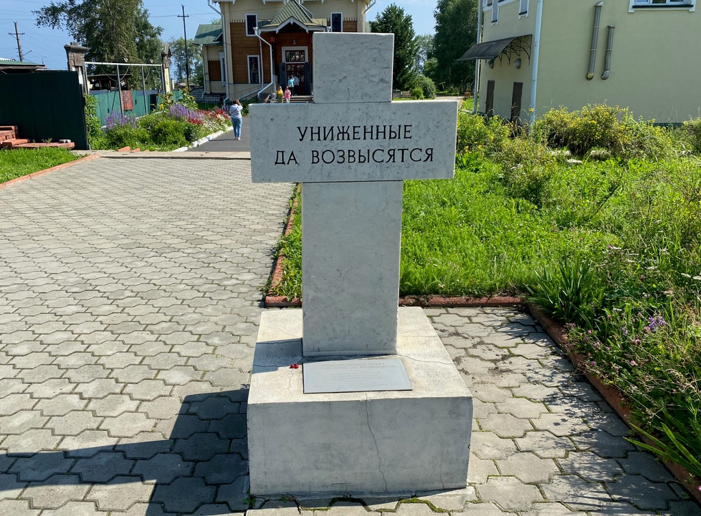 Недалеко от храма стоит крест в память о жертвах политических репрессий.