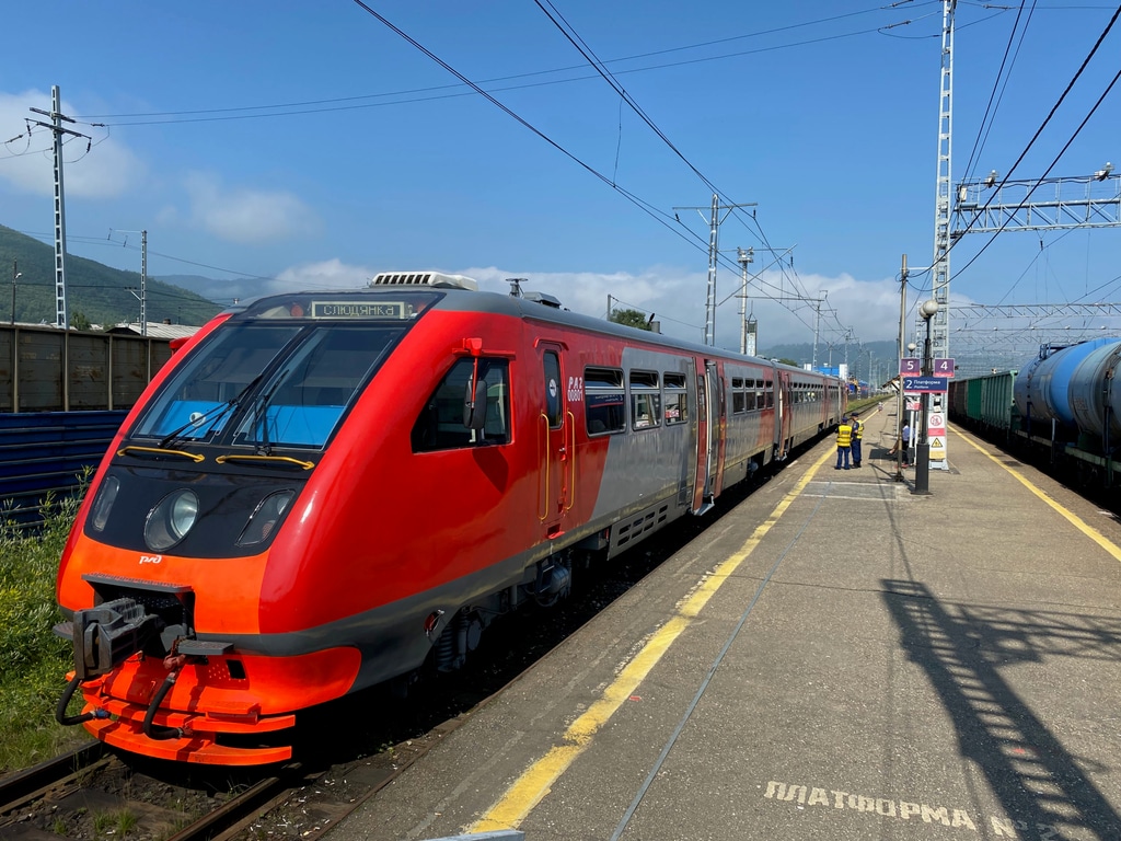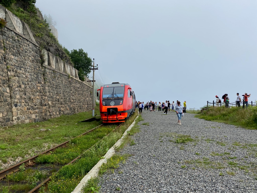 Туристический поезд, на котором мы ехали по КБЖД, состоял всего из трех вагоном.