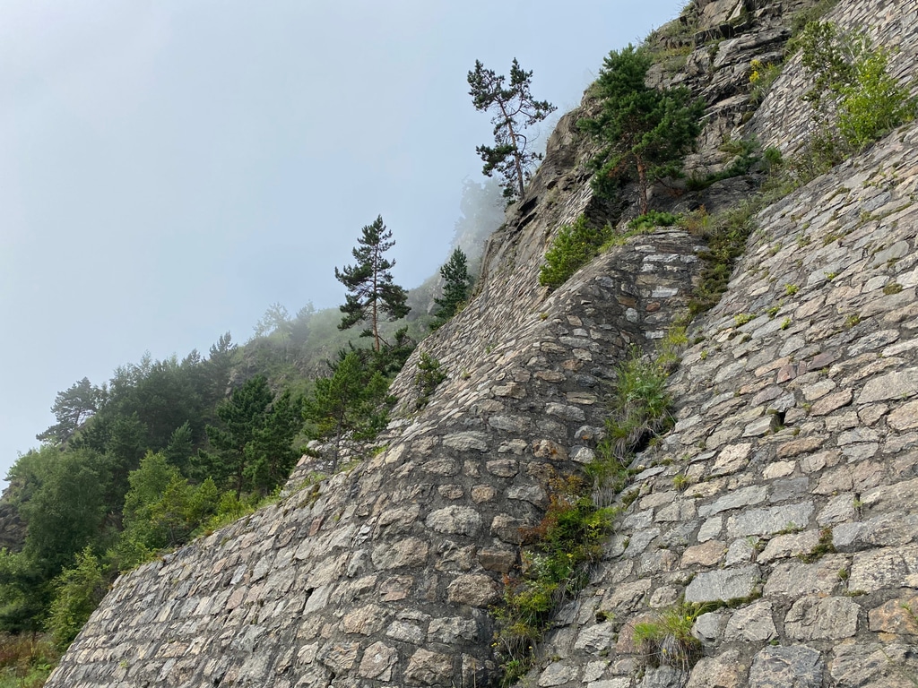 Выложенная из камня подпорная стена не гарантирует стопроцентной защиты от обвалов. Камень летит не предсказуемо и лучше об этом не думать.