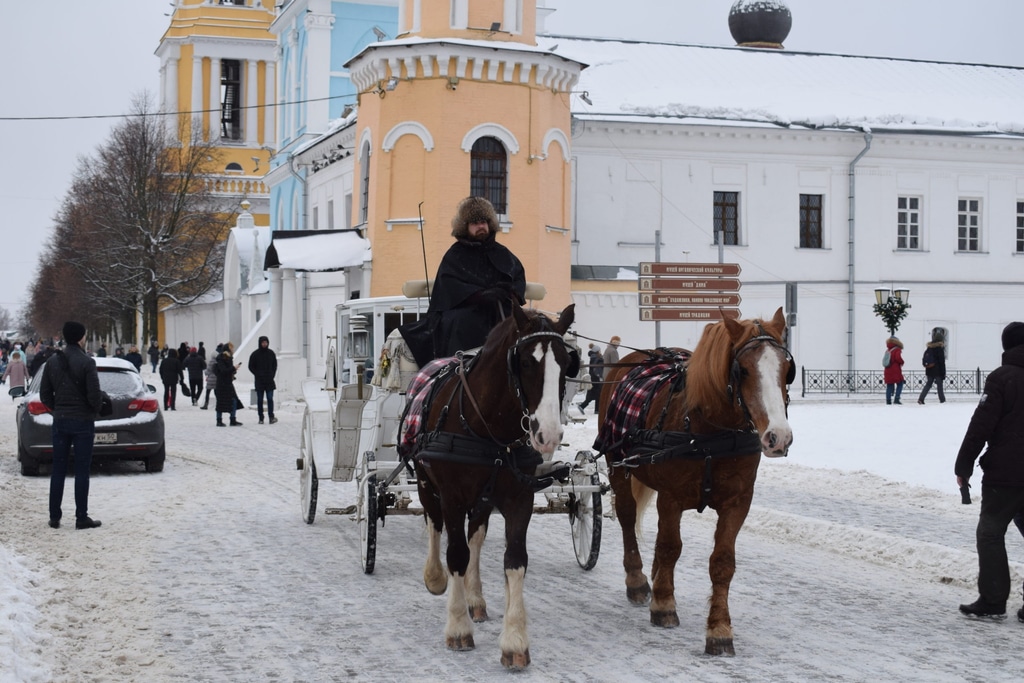Свою однодневную экскурсию по Коломне мы провели в исторической части города. В ходе знакомства с городом сразу сложилось впечатление, что мы каким-то чудом попали в дореволюционное время. Здесь тебе и городовые, и русские тройки, и торговые лавочки и старинные домики. А еще почти совсем нет транспорта! А вот людей, прямо скажем, толпы! Что поделаешь — праздники! Народ гуляет!