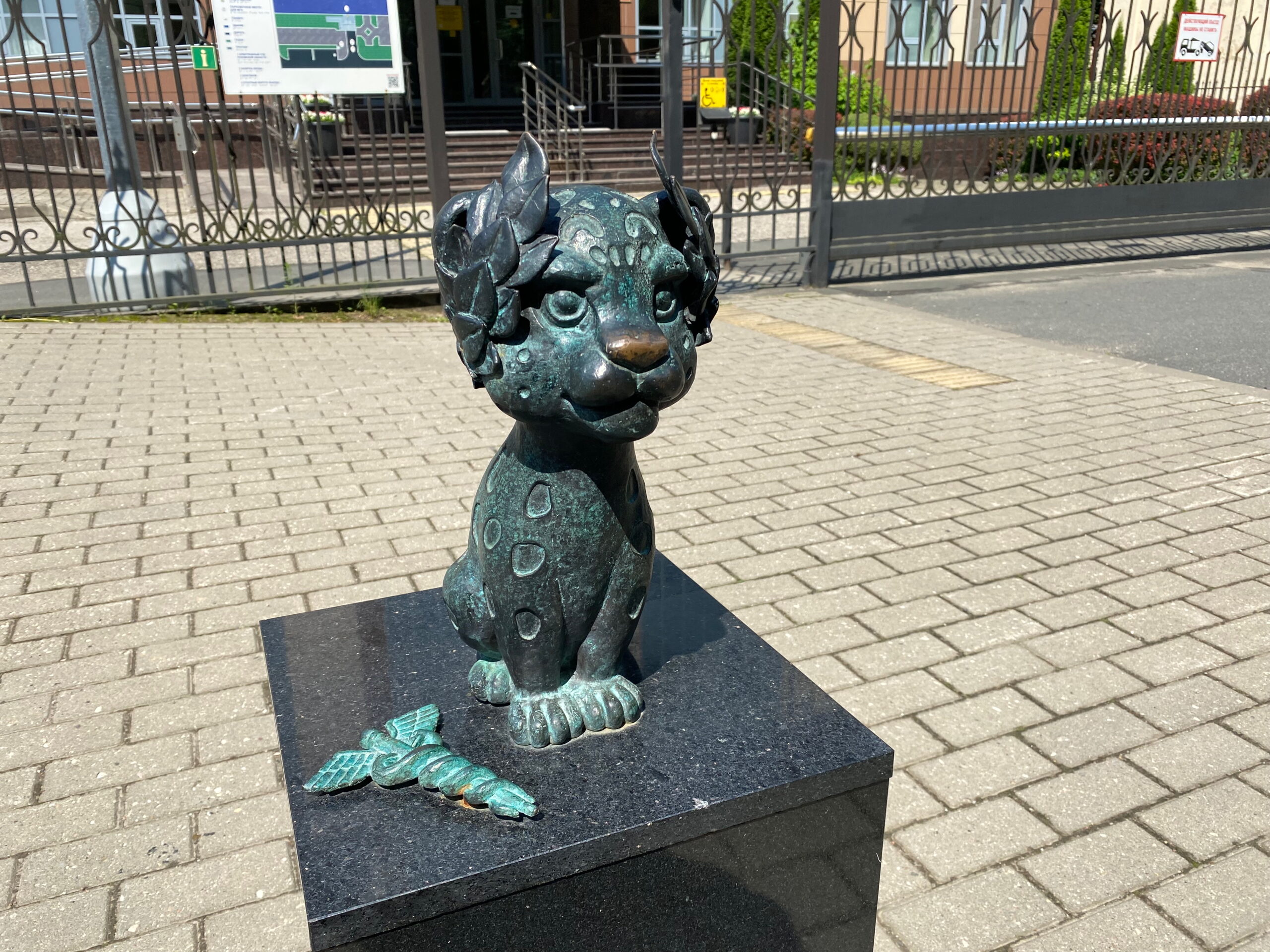 Барсик Фима стоит перед зданием арбитражного суда. Назвали его в тему: в честь богини правосудия Фемиды.