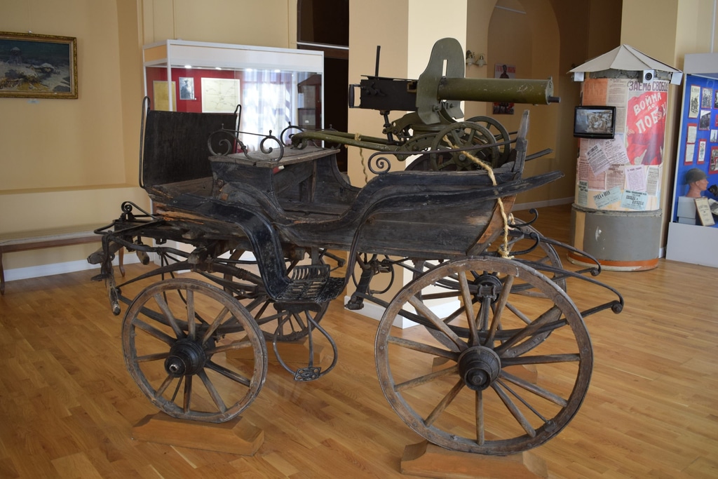В краеведческом музее собрана богатая коллекция экспонатов по истории и природе Донского края. Одна из самых интересных выставок посвящена гражданской войне. Как известно, ростовская земля была серьезным оплотом белого движения. На ней шли ожесточенные бои между белыми и красными. В одном из залов можно увидеть знаменитую тачанку времен гражданской войны.