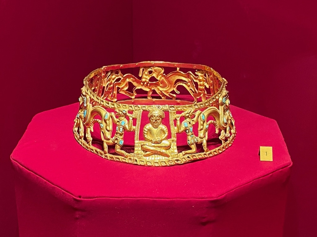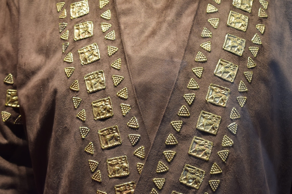 Сегодня в музее с большой достоверностью можно увидеть, как выглядел скифский царь в 4 веке до нашей эры. Царскую одежду украшают золотые нашивки. На шее символ царской власти золотой обруч с фигурками лежащих львов. Скифский царь носил обруч вместо короны.