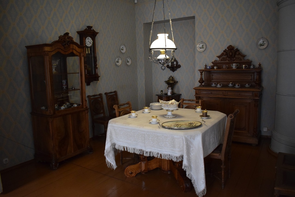 В столовой семья собиралась вечером на обед. Достоевский работал ночью примерно с 11 до 6 часов утра. После работы он ложился спать до обеда, потом занимался повседневными делами и только в 6 вечера обедал. По нашим меркам довольно непривычный режим дня.