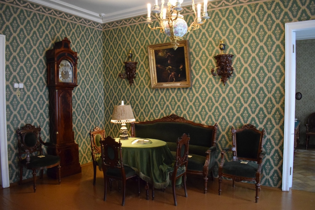 Прямо из прихожей мы попали в уютную гостиную в зеленых тонах. Здесь Достоевские встречали гостей. К этому времени Достоевский уже пользовался большой популярностью и в России, и заграницей, поэтому посетителей в доме было очень много. Несмотря на большую занятость писатель никому из них не отказывал. Из гостиной наш путь лежит в кабинет писателя и столовую.