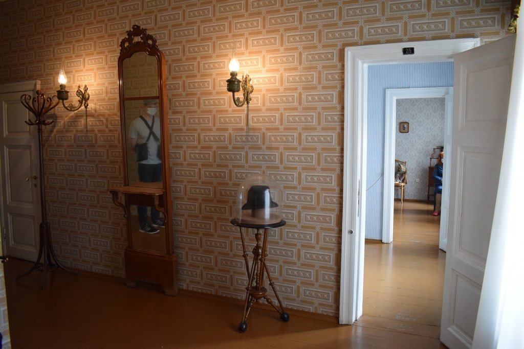 Квартира писателя, как и любая другая, начинается с прихожей. Здесь на самом видном месте под стеклянным колпаком демонстрируется подлинная шляпа Достоевского. Кстати, шляпа очень модного фасона, писатель по воспоминаниям близких любил хорошо одеваться.