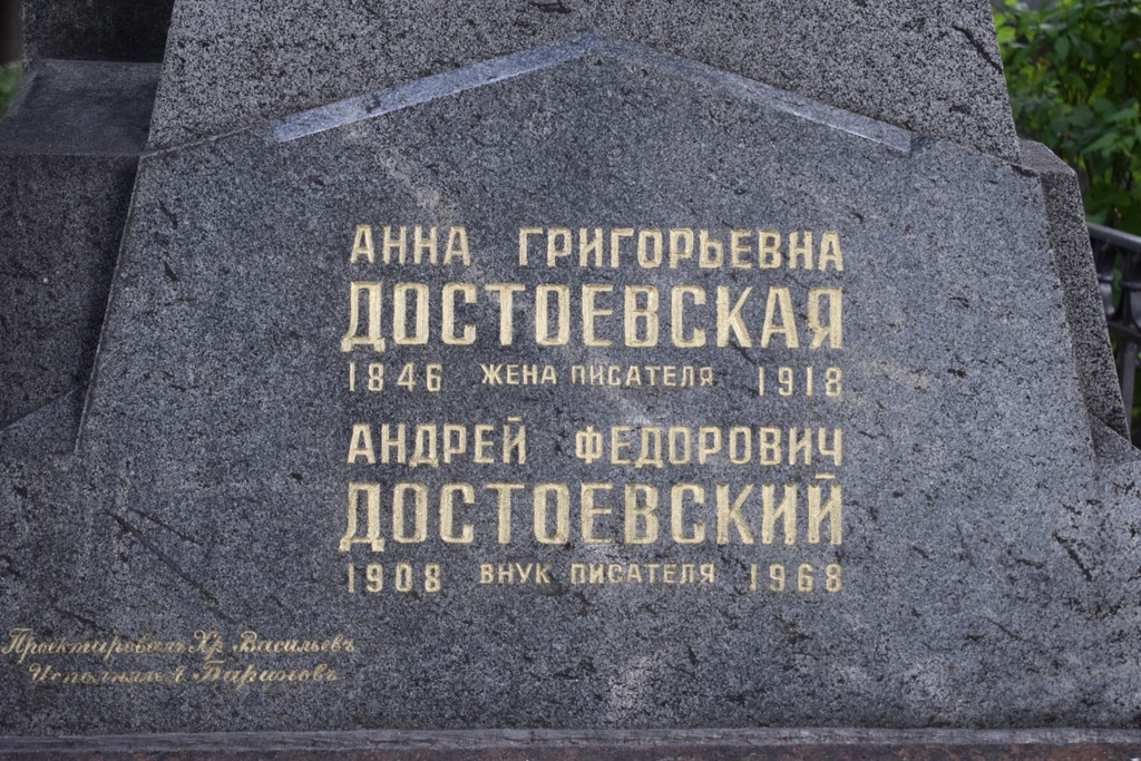 Похоронен Достоевский на знаменитом Тихвинском кладбище Александро — Невской Лавры. Там же нашла свое последнее пристанище и его супруга. В Лавру мы решили отправиться во второй половине дня, а пока прощаемся с музеем и посмертной маской писателя.