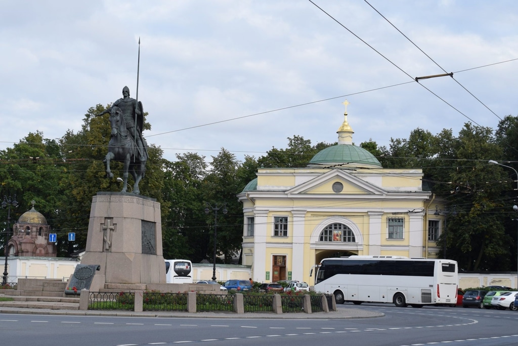 Путь в Лавру лежит через Невский проспект и площадь Александра Невского. Площадь появилась здесь еще в конце 18 века, а вот памятник новгородскому князю в центре — уже современное творение. Он датируется 2002 годом. В Лавру ведут ворота с Надвратной церковью, основанной тоже в конце 18 века.