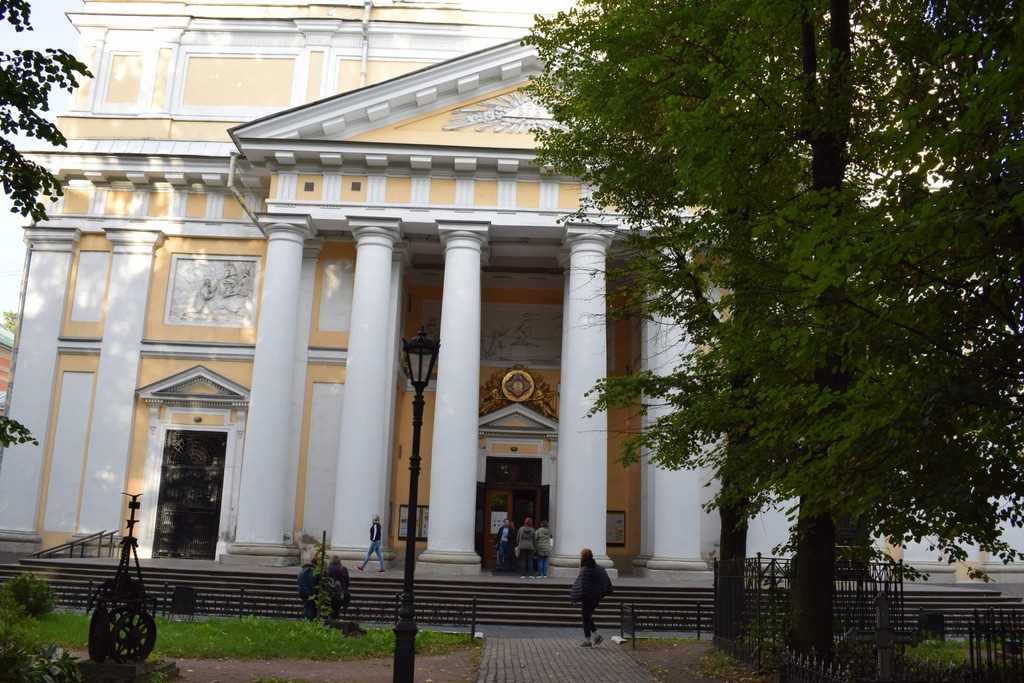 Дальше наш путь лежит к главному храму Лавры Свято-Троицкому собору. Собор появился гораздо позднее Благовещенской церкви уже в конце 19 века. Сюда из Благовещенской церкви были перенесены и мощи Александра Невского. В 1752 году их поместили в великолепную серебряную раку. К сожалению, она сейчас находится в Эрмитаже.