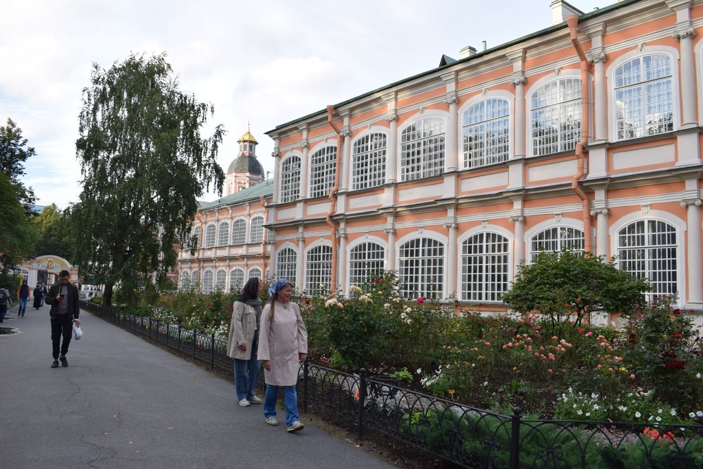 Надо сказать, Александро-Невская Лавра по размеру небольшая, но очень уютная. Она буквально вся утопает в зелени и цветах. Несмотря на большое число людей здесь везде царят чистота и порядок.