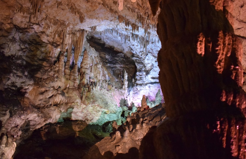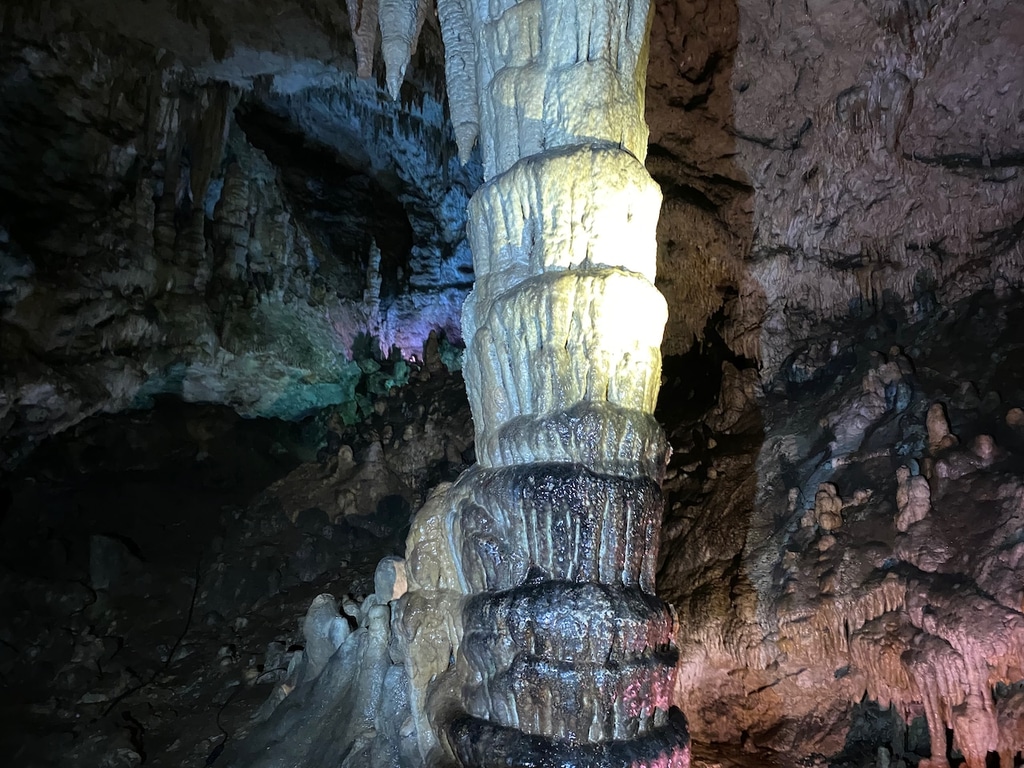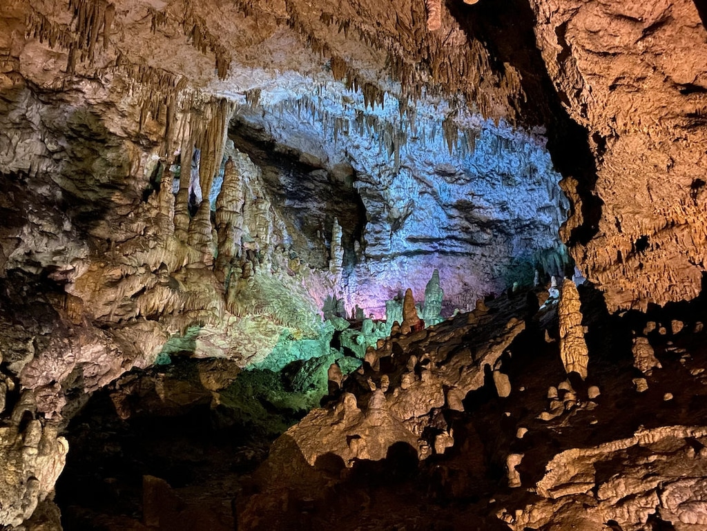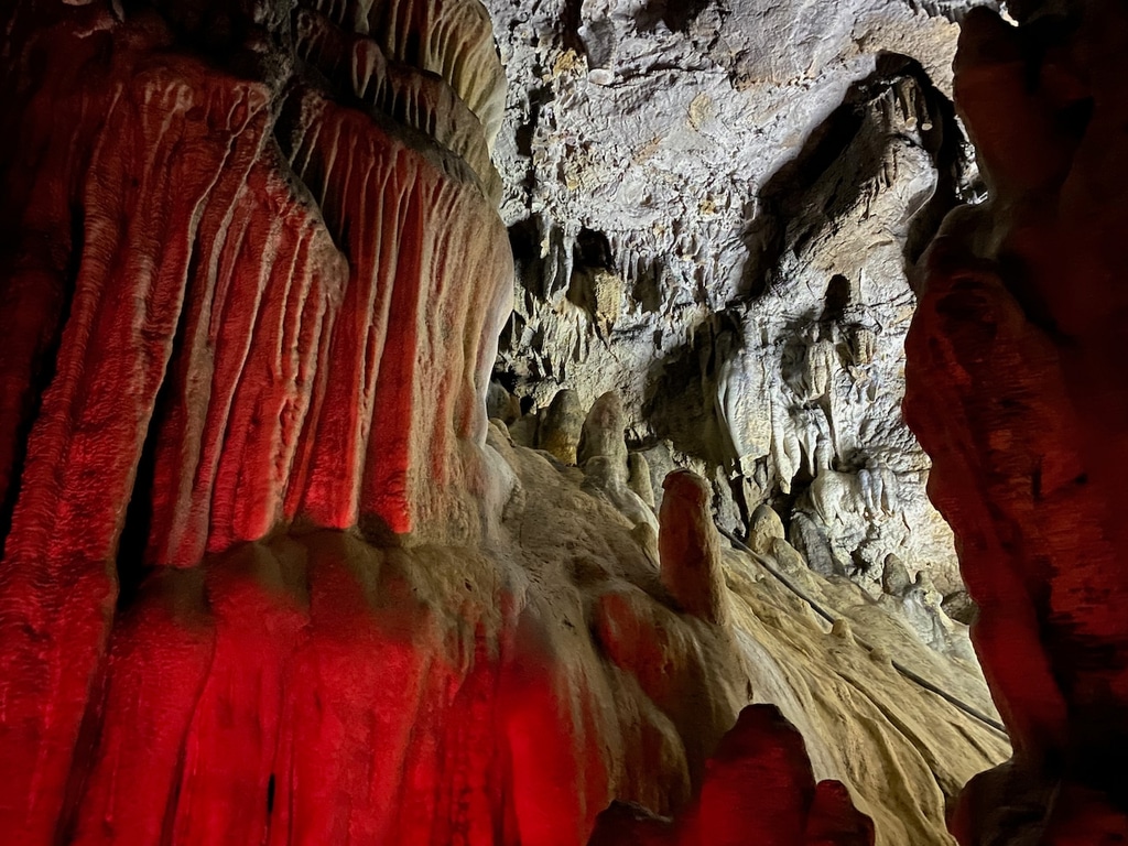 Цветная подсветка подчеркивает красоту пещеры и придает ей сказочности и загадочности. Невольно вспоминаются гномы, которые должно быть живут именно в таких пещерах.