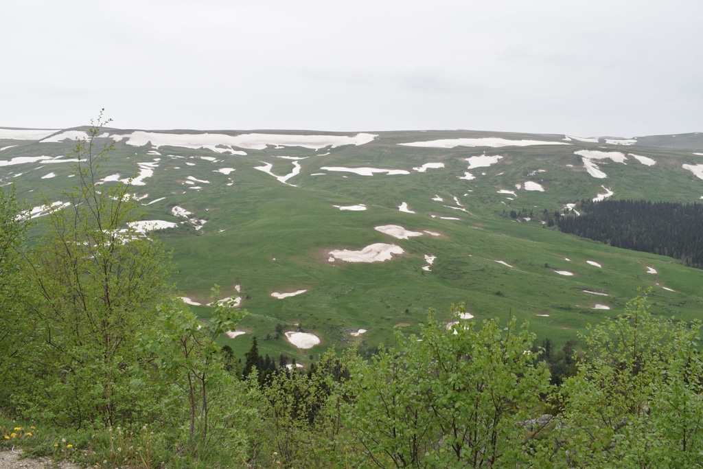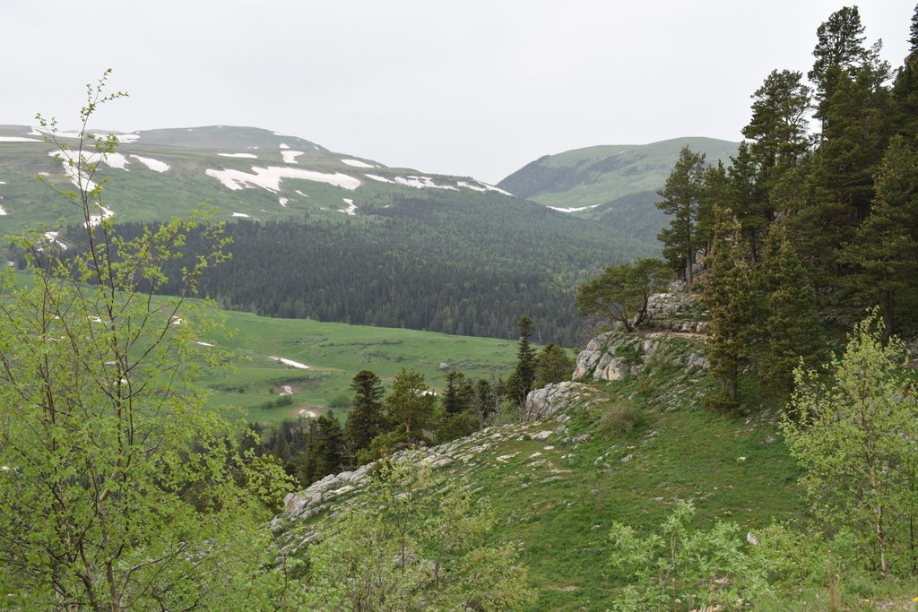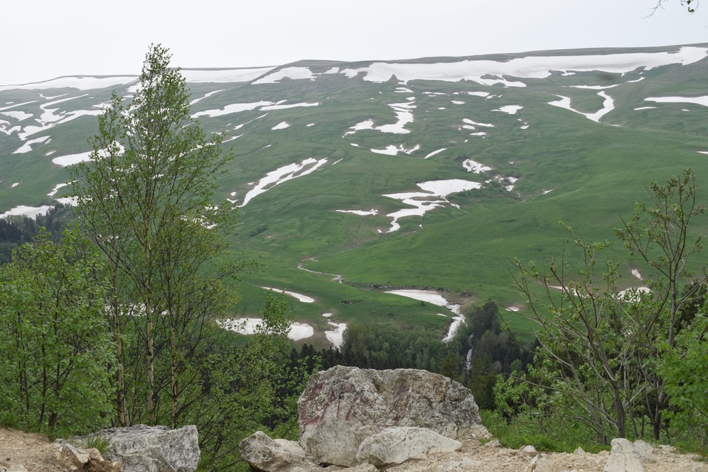 А там выглядит плато Лаго-Наки в начале лета. На улице июнь и жара, а на плато все еще местами лежит снег. Красота просто потрясающая! Ее дополняют чистый горный воздух, пение птиц и запах трав.