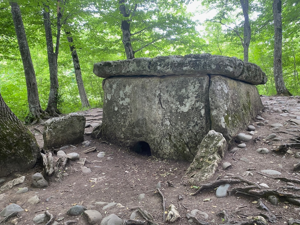 Как уже говорилось, в горах Адыгее прямо под открытым небом можно увидеть самые настоящие «живые» древности — дольмены. Они удивительным образом сохранились до наших дней, хотя, к сожалению, с каждым годом их становится все меньше и меньше. Один из таких памятников находится в районе поселка Каменномостский, который раньше носил адыгейское название Хаджок.