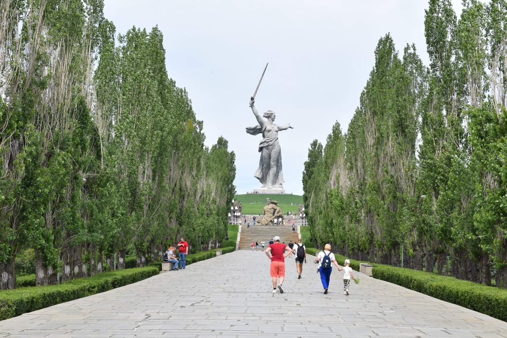 На Мамаевом кургане всегда очень много народа. Часто встречаются семейные пары с детьми. Сюда же ежегодно 9 мая приходит народное шествие «Бессмертный полк».