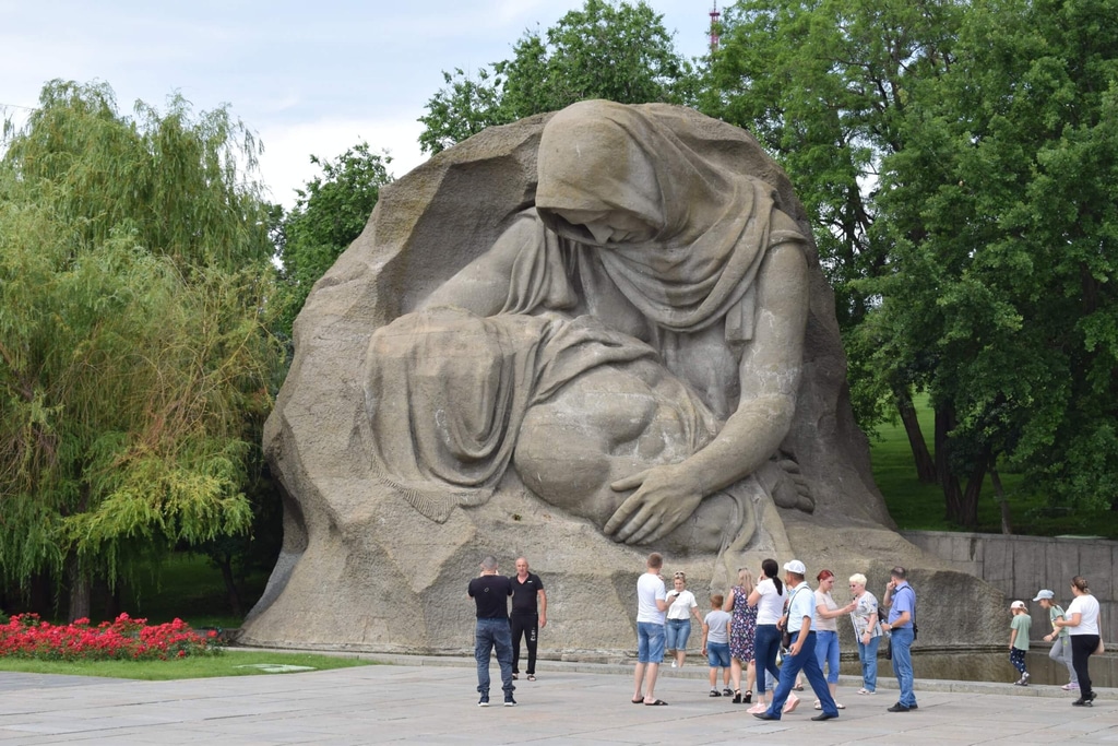 Все мы хорошо знаем слова песни: «На Мамаевом кургане тишина, За Мамаевым курганом тишина, В том кургане похоронена война, В мирный берег тихо плещется волна». Так вот, этот самый Мамаев курган находится в Волгограде. Как мне кажется, это самая значимая достопримечательность города. В дни Сталинградской битвы 1942-1943 гг. на этом месте шли самые тяжелые и кровопролитные бои.