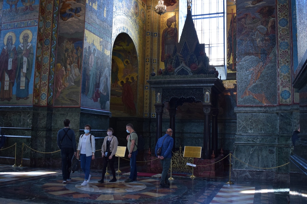 Надо сказать, храму здорово повезло. Сначала его хотели взорвать в 1931 году, потом в 1938 году. Но решение все откладывали, а во время Великой Отечественной войны сюда стали свозить умерших во время блокады ленинградцев. После войны в храме какое-то время хранились театральные декорации. А в 1961 году в его куполе случайно обнаружили неразорвавшийся фугасный снаряд. Вот так, чудесным образом Спас на Крови дожил до 1970 года, когда власти наконец решили открыть в нем музей.