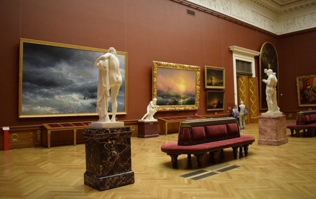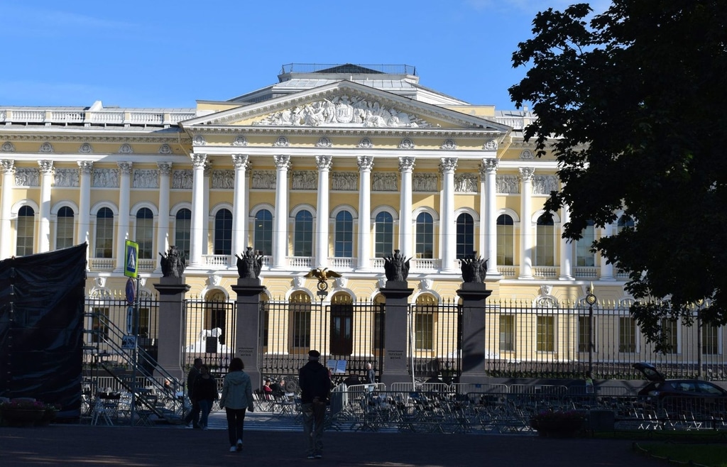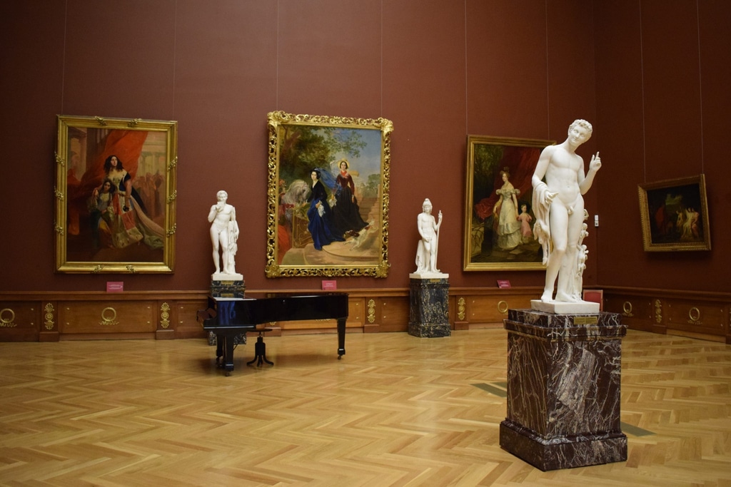Надо сказать, Русскому музею принадлежит не только Михайловский дворец. Его многочисленные экспонаты занимают Строгановский и Мраморный дворцы, Михайловский замок и другие здания. Русский музей обладает огромнейшей коллекцией из 400 тысяч предметов русского искусства с десятого по начало двадцать первого века. В Михайловском дворце представлена живопись и скульптуры десятого- девятнадцатого веков.