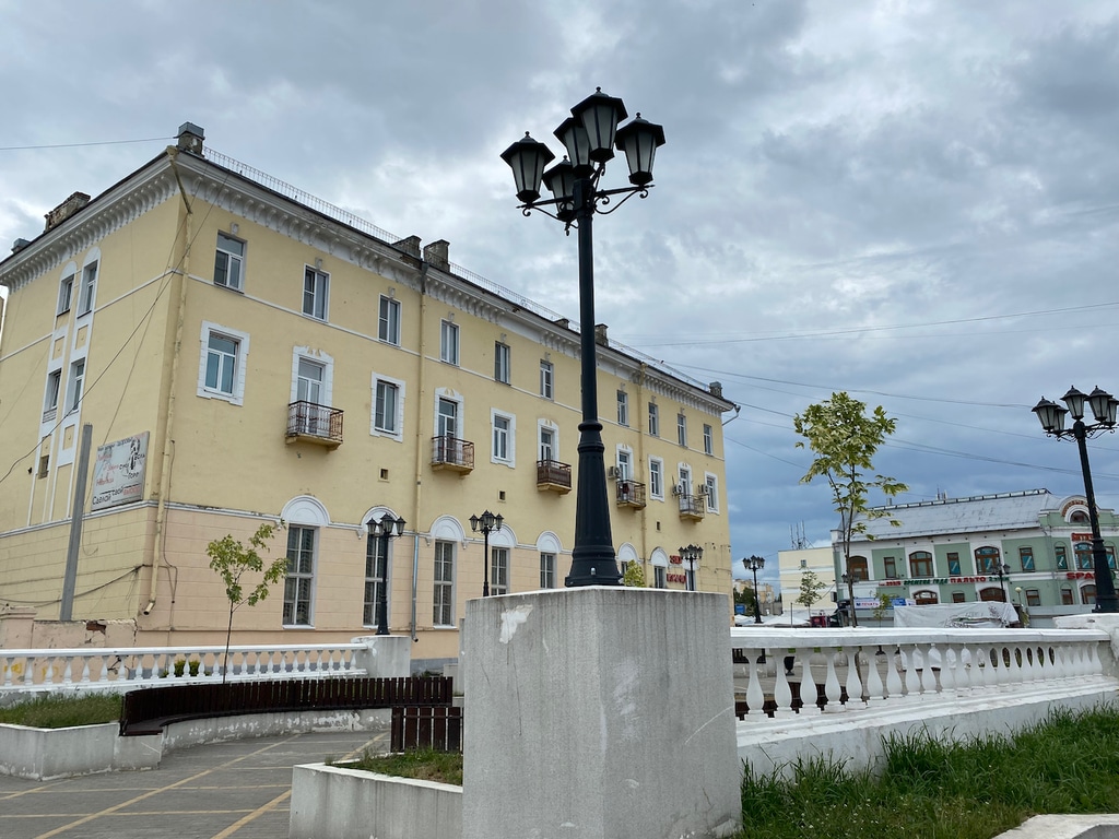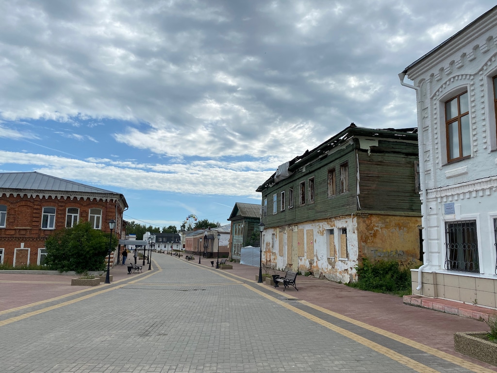 Советская улица производит двоякое впечатление. Между симпатичными обновленными домиками встречаются полуразрушенные, потрепанные временем, здания.